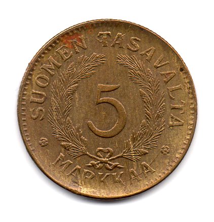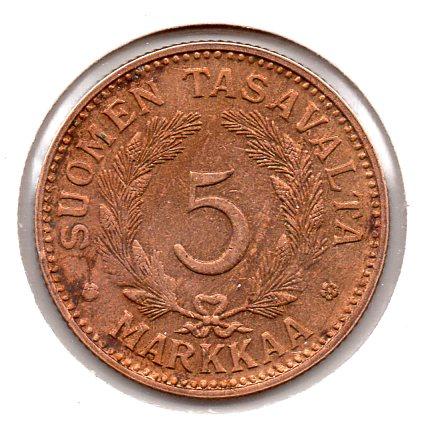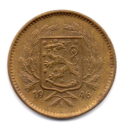 Apologies for my after 3 pint reply from the pub last night. Well then Sir. Here we go. :thumb: Post WWII the Finnish economy was in recession. Brass is cheaper than AL-Bronze so the mint changed composition mid year. Also the higher values (10 & 20 Markkaas) were not in production after the war. With in six years from 1946 to 1952 the Finnish government revalued it's currency and the 5 Markkaa in 1952 was minted in iron then later in nickel plated iron. The higher values of 10 and 20 Markkaa resumed in AL-Bronze but were smaller in size. Collectors of Finnish coins highly value the 5 Markkaa that was produced during and just after WWII because it was the highest value coin for general circulation, plus the strikes are crude because of the complications of minting coins during the war.
