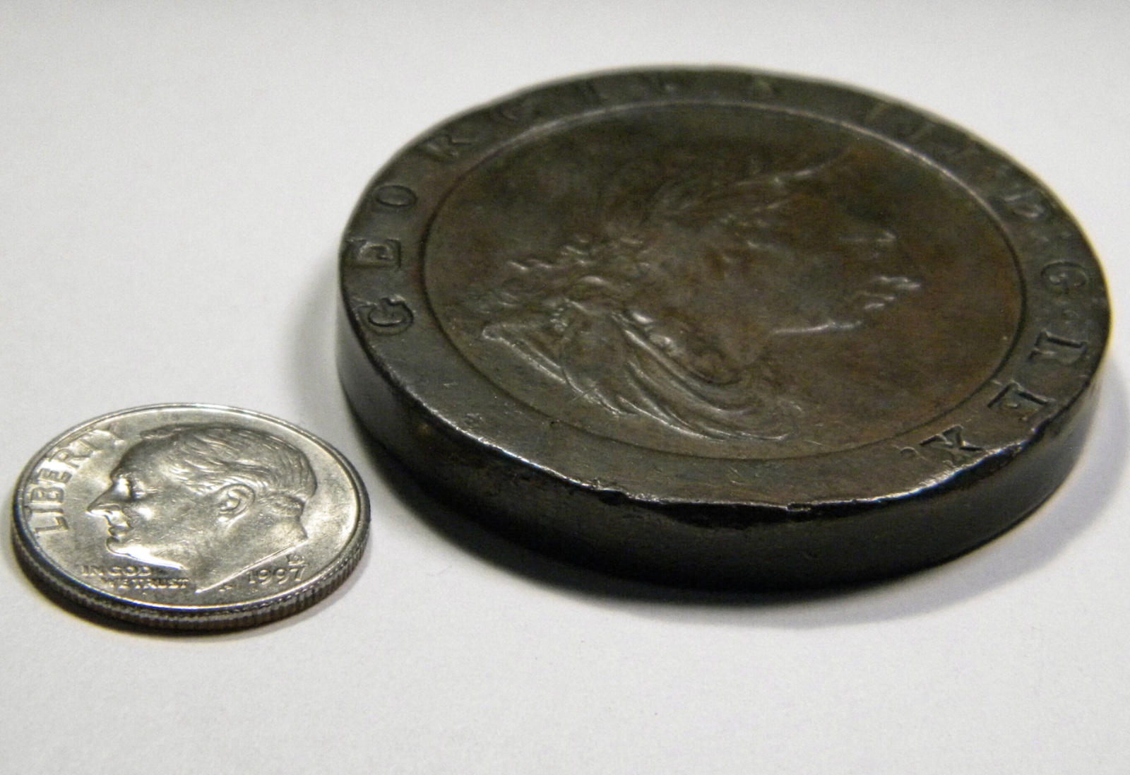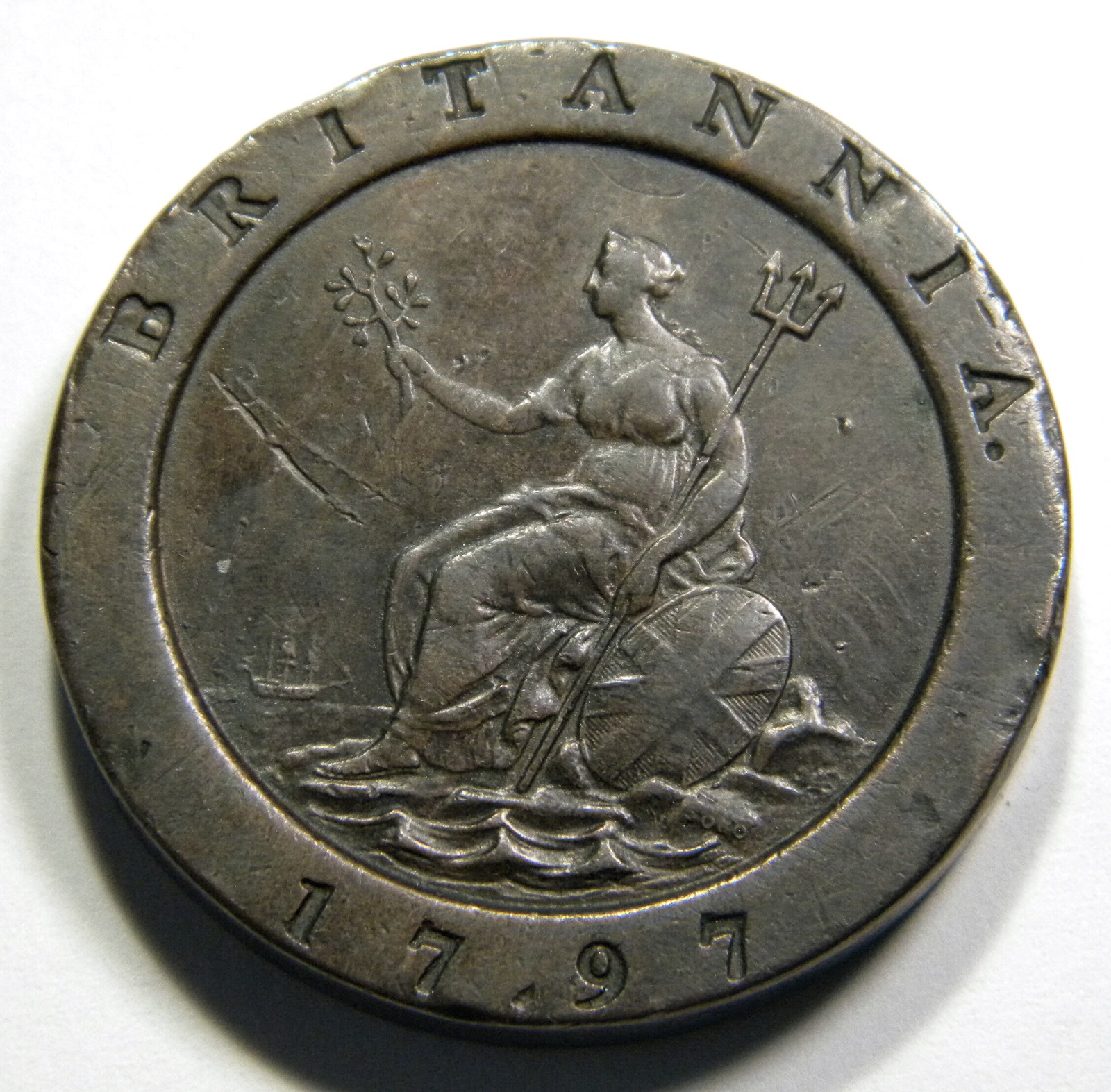 The first one I bought on ebay advertised as a 2 pence came in and it weighed 28 g so I complained to the seller and he apologized, refunded and said keep the coin. I then bought a "real" 2 pence. I would love to have a 1797 1/2 pence to go with them