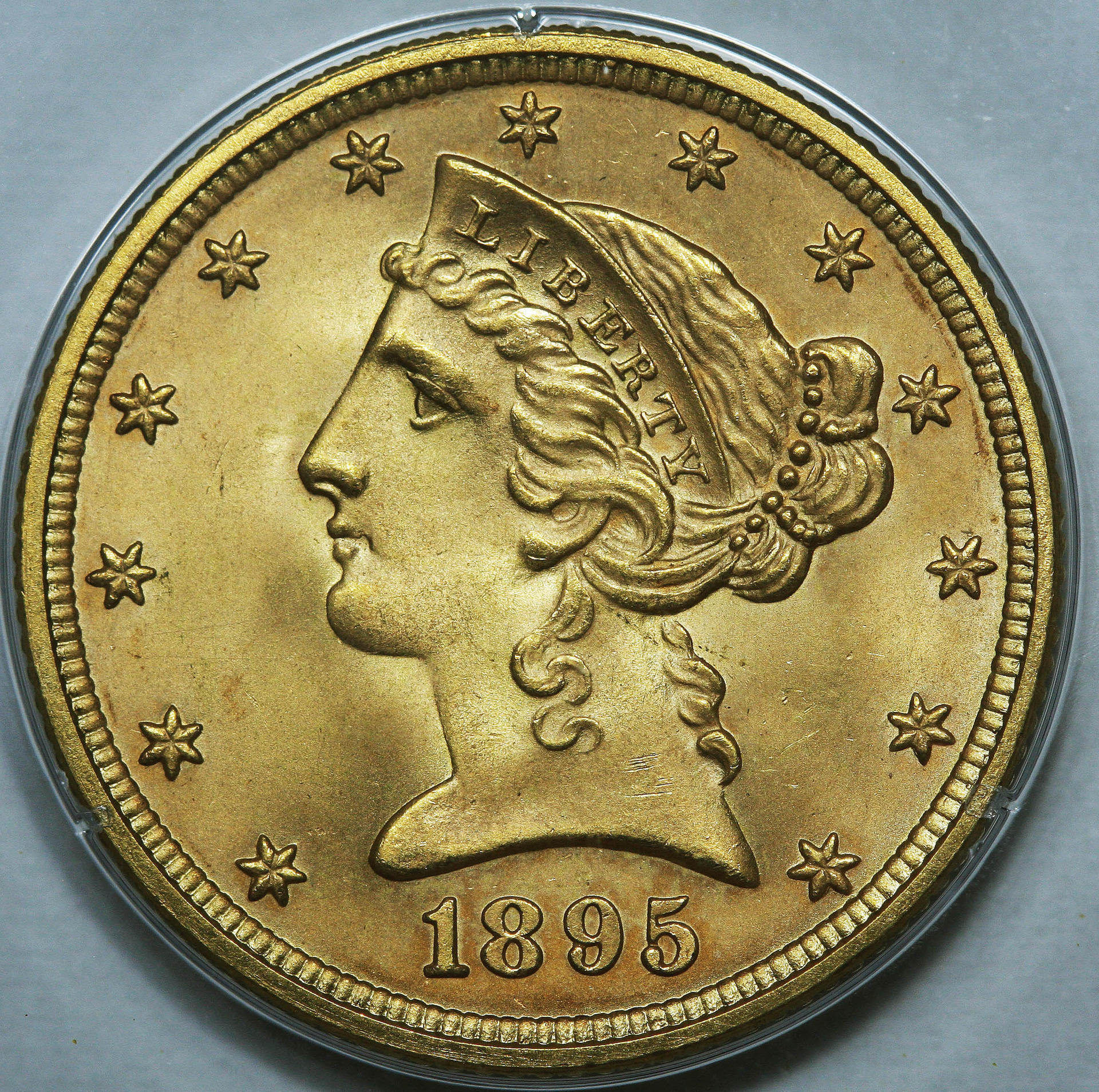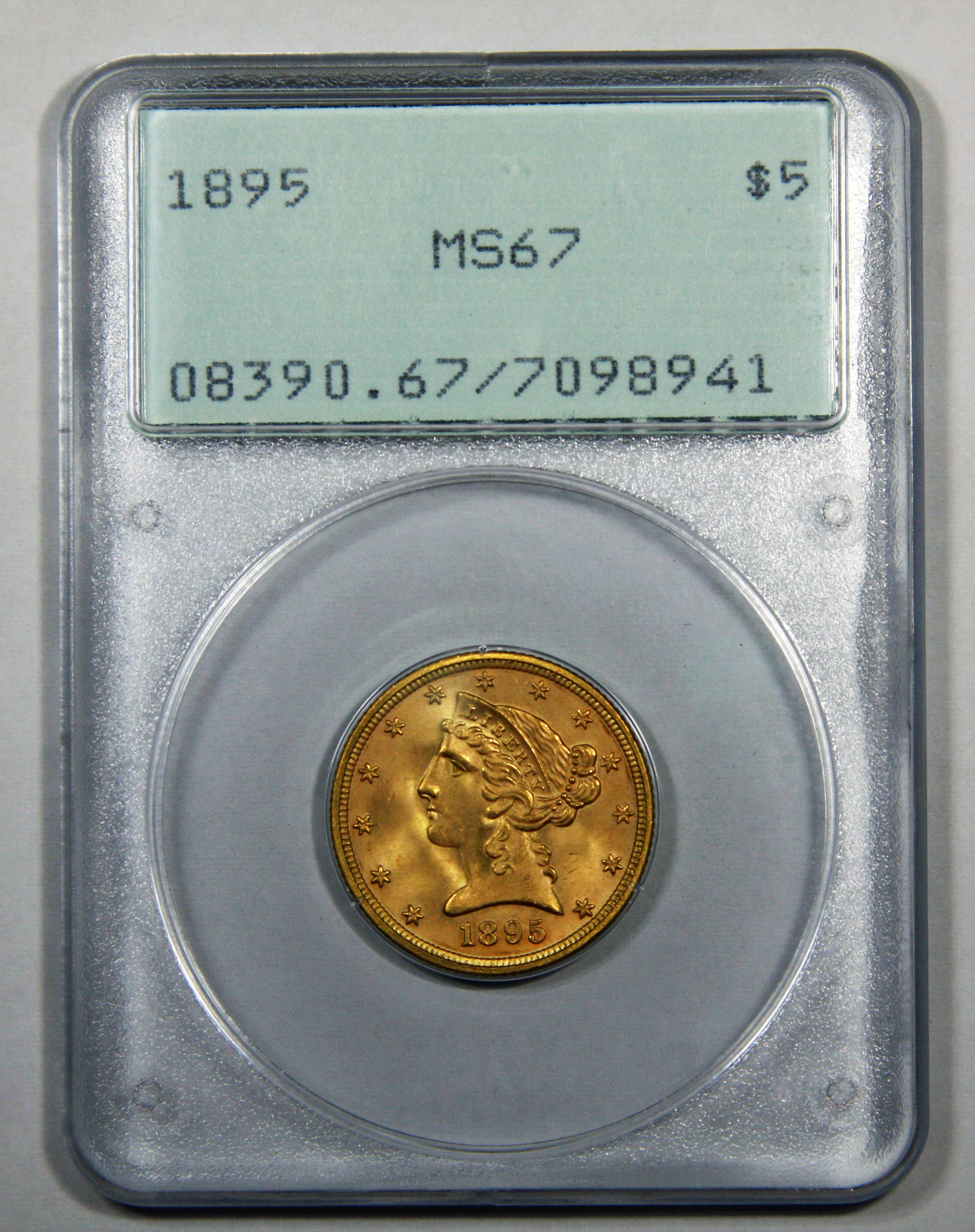 According to Garrett & Guth there are 2 or 3 1895 $5 in 67, with the last one selling in 2004 for about $11,000. That's based on data from 2006. As to the grade, I have no problems with it
