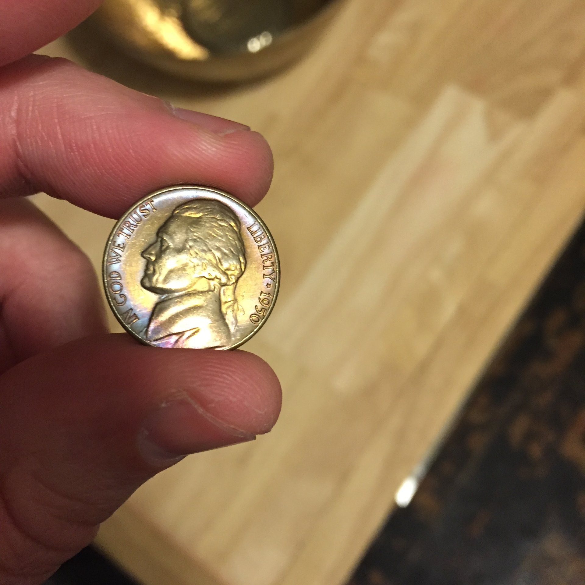 I just made my first purchase for my 20th century type collection. I'm not sure if you can tell from then pic but in addition to the golden tone, it also has a purple ring around then rim on both the obverse and reverse.