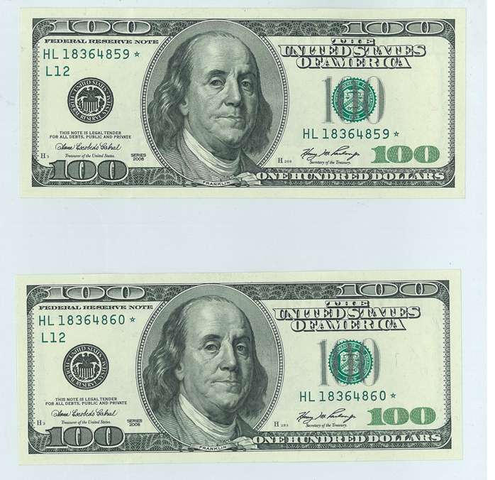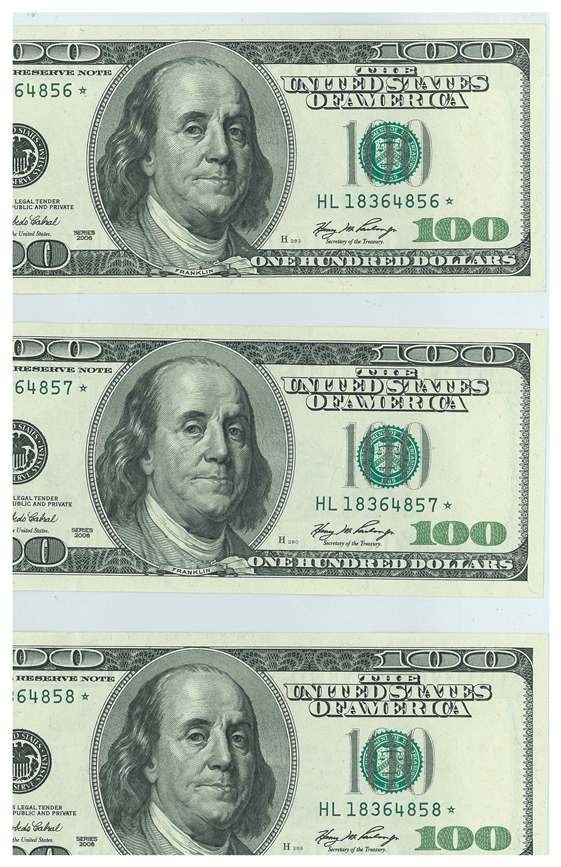I received five consecutive 2006 $100 star notes from the bank today in uncirculated condition. Also two others but non-consecutive from same district. I am guessing these aren't keepers due to the number of total printed. Run Size: 3,200,000 Total Printed: 9,936,000 You think these would sell on ebay? Or anyone here need these for their collection? Thanks. The one scan got cut off.