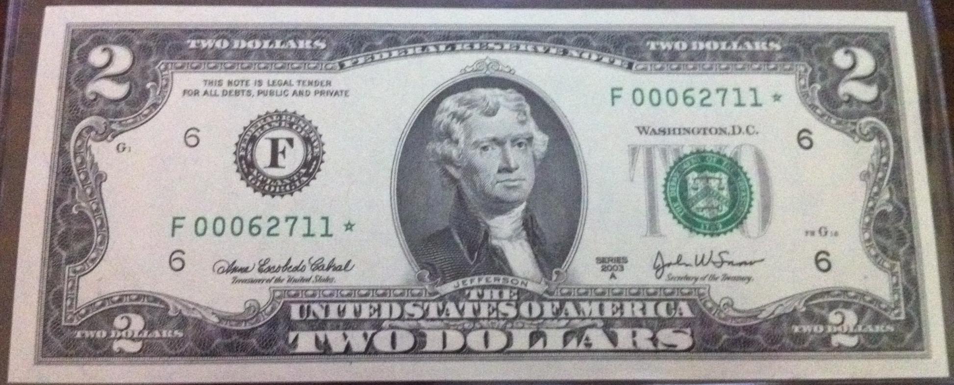 Well, if $2 is your favorite denomination, do you go through straps of used $2's? The last strap of used $2's I went through gave me awesome return. I got 3 stars (Series 2003, Minneapolis) as well as a minor but error enough 1976 error $2 with its consecutives that weren't errors. I'm also working on getting an entire set of 1976 $2 district set uncirc going. Believe it or not, it is still relatively common to find uncirculated 1976 $2's. I have yet to find any Monticellos from circulation, but I did buy some back in my buying days so I'm straight as far as red seals go anyways. Do you happen to have any interesting $2 finds?