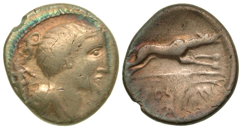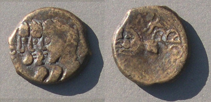 Allen plate II 53. Struck before 52 BC (Time of Julius Caesar) but in circulation until the end of the century.