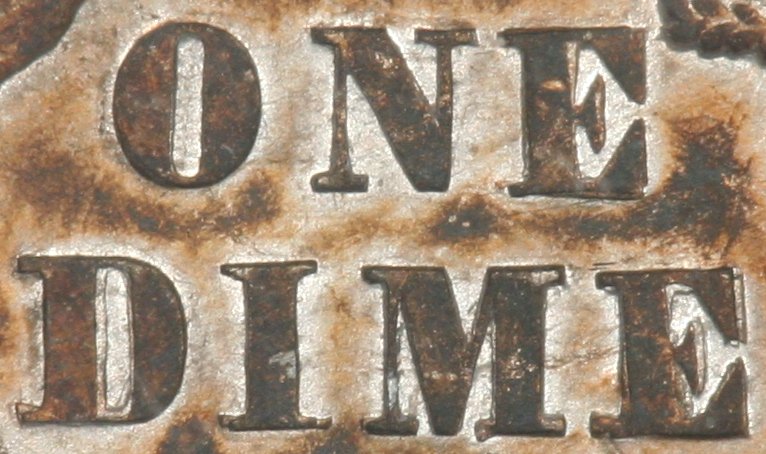 "Over the Garden Wall": Whimsical love token engraving on 1876 Seated Liberty dime Host coin: 1876 USA Seated Liberty dime. Obverse: original Seated Liberty design, unaltered except for some wear-related scratches. Reverse: "OVER THE GARDEN WALL / " R (G?) E. C.", (fox? cat?) leaping over stone wall in pursuit of another animal whose tail can be seen, dog chasing bird below. This is a great pictorial love token, though I don't know what the "Over the Garden Wall" reference is about. The engraver, despite a folksy style, had some obvious skill. At first I thought he or she had blundered the initials, but looking more closely, it seems they're deliberately done in a "furry" font, perhaps in some further reference to animals. The seller described this vignette as a cat chasing a mouse over the wall. Cat that may be, but it also might be a fox, and the creature it is chasing (whose tail can be seen on the opposite side of the wall) certainly isn't a mouse. *