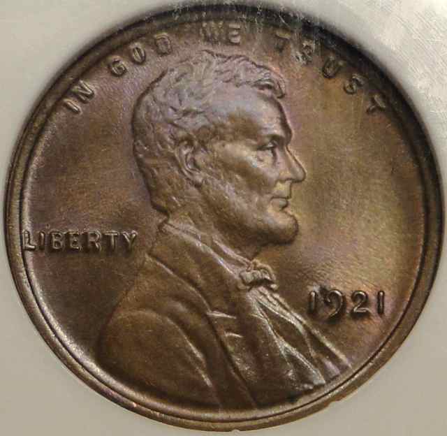 Just re-imaged this 1921 a few days ago. Not the best photo but still haven't bought an digital SLR. Rather buy a new coin! I like the light on Lincoln's portrait at 2 O'clock but I also get that upper rim shadow off the slab. Oh well, the colors are right and the detail is there for now.
