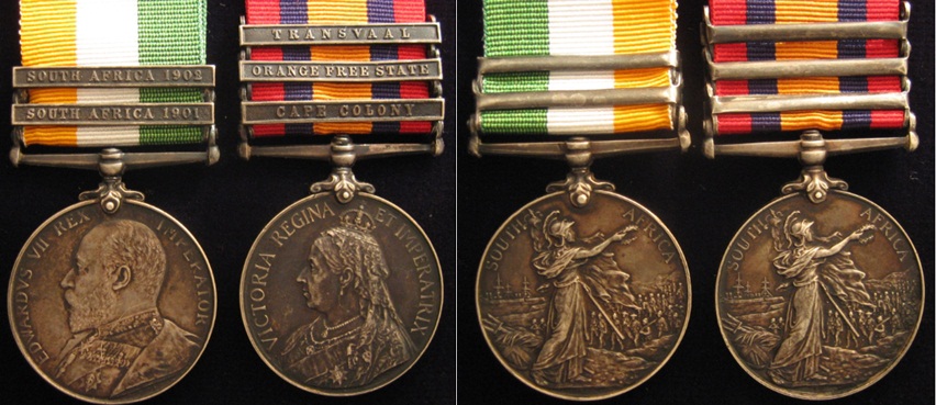 and Boar War medals, some with bars for further campaign battles.