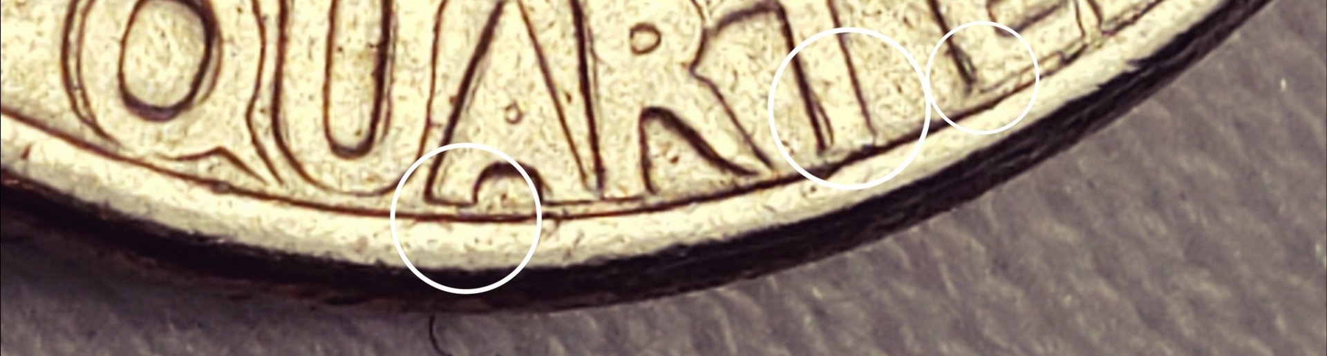 Are you referring to a "Split Serif"? This isn't a quarter, but it is a good example of Split Serifs. Chris