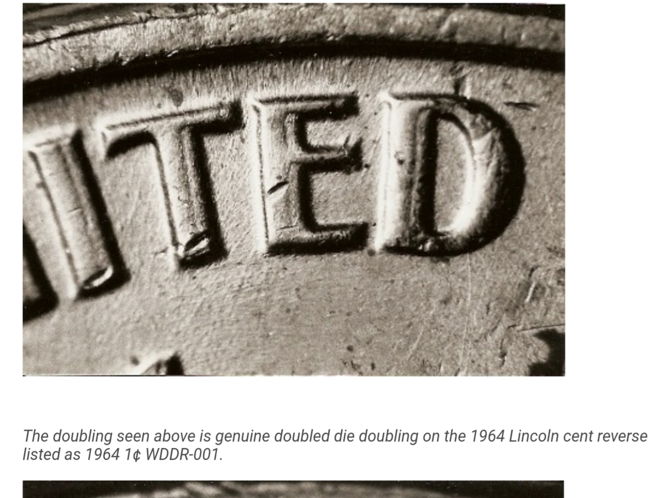 Okay, a doubled die occurs when a second strike from the working hub is not aligned properly with the working die. As a result, the secondary doubling appears to have the same rounded appearance. Note in the example you posted of a true doubled die, that is the case, but in the photos of your coin, the secondary image is "flat and shelf-like". Chris