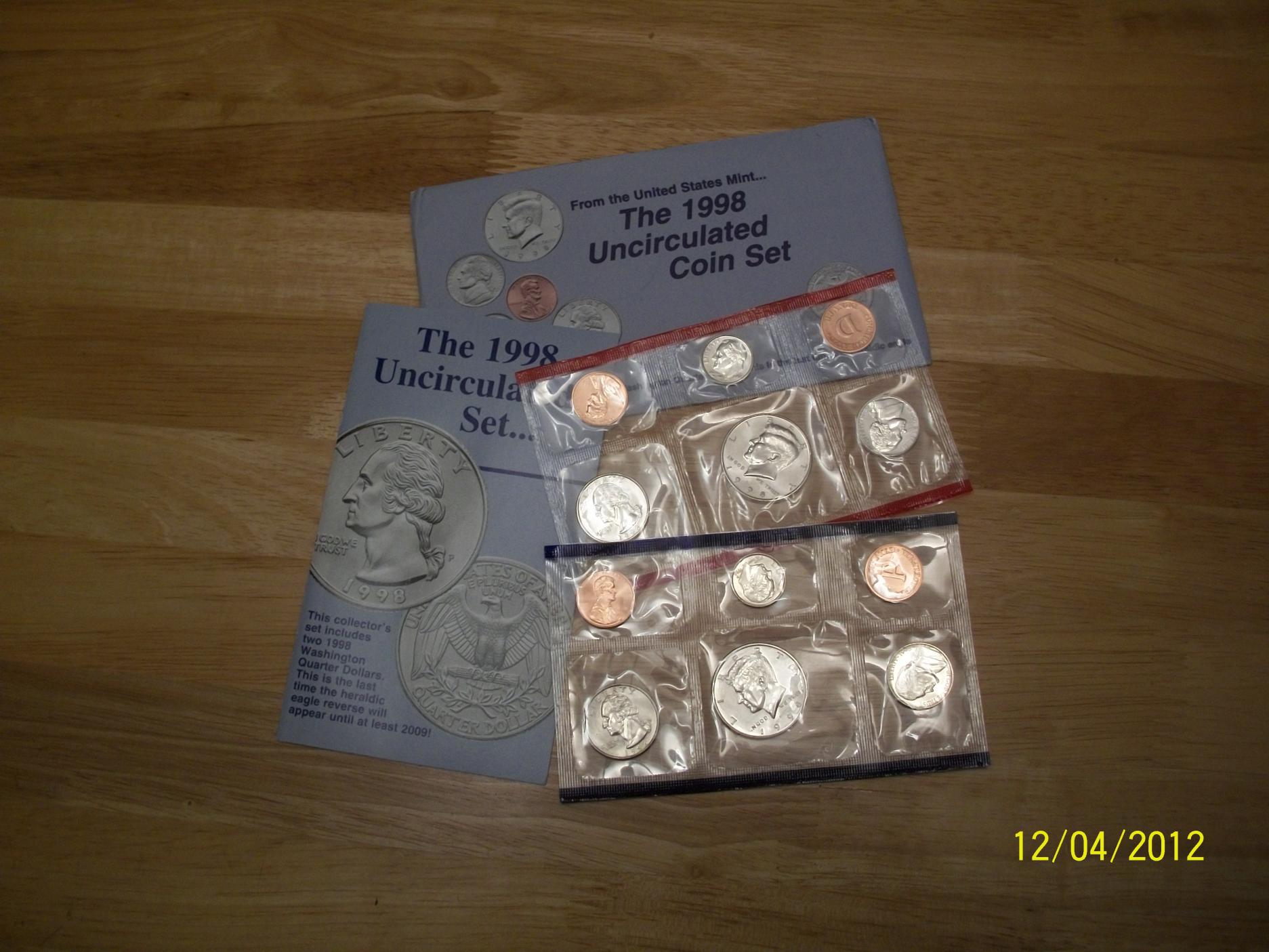 I have 4 mint sets each from 1998 and 1989.I am asking $4.50 each plus shipping. Shipping will be $1.90 for 1 set and I will combine shipping if anyone wants multiple sets. I also have several older US coins guide and handbooks. The dates range from the early 60's until the early 90's. I have attached a photo of 3 of them to show you the condition of these books. In my opinion the are in very good shape. Showing minimal wear on the cover and the pages. I am asking $2 a piece for these plus shipping. The cost of shipping ranges from $2.50 to $3.00 depending on the weight of the book. Again I will combine shipping if anyone wants multiple books or a book and a mint set. Thanks Derek