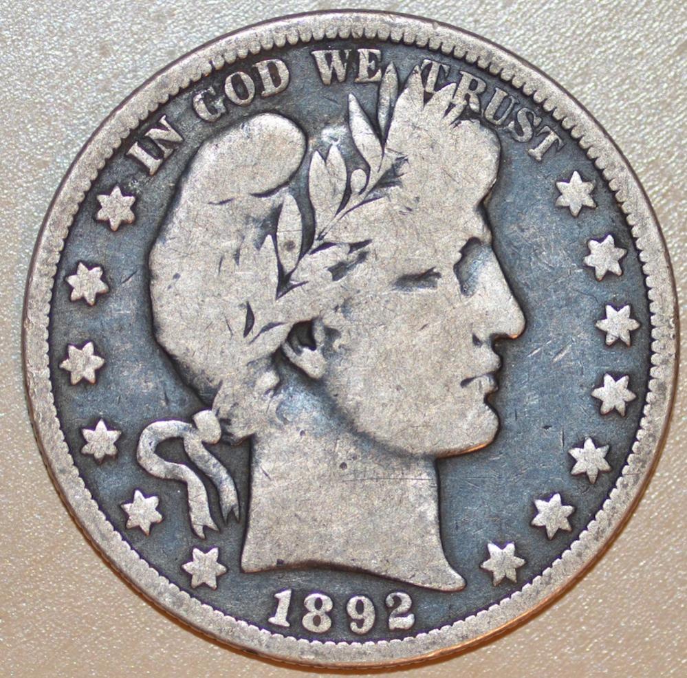 Selling on consignment: 1892 O Barber Half, problem free VG with a nice cameo-like dark patina Mintage of 390,000 (Key Date) Found this coin while searching through my auctioneer friend's junk silver bag. I know, many of you had the same thought I had when I found it... "You paid less than melt value for this coin? You lucky..." Asking $375 on this coin - Free Shipping with delivery confirmation included in price. Payment via USPS Money Order or PayPal Gift. If you would prefer to use regular PayPal, I have no problem with this, just add 3% to the purchase price. Coin Prices has this at $310 in G and $420 in VG. Numismedia has this priced at $276 in G and $402 in VG. And, of course, here are the photos: I'll also be selling some better date Indian Head Cents this week - here is a link to a Photobucket album with pictures. Asking prices are listed in the description of the obverse of each coin. http://s116.photobucket.com/albums/o35/mielkeba/Coins For Sale/Consignments/ PM me for questions/purchases. I am willing to cut you a break on price with every additional coin you buy (i.e., discounts for people who buy more coins.) I have 100% feedback on eBay (which I will avoid using until they bring their fees/treatment of sellers back to reality) and have completed many successful transactions here and on PN (another coin forum.) Thanks everyone!