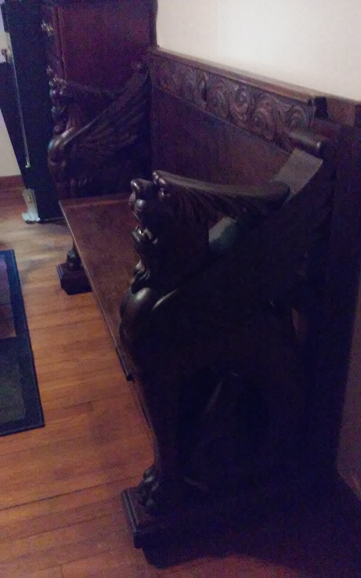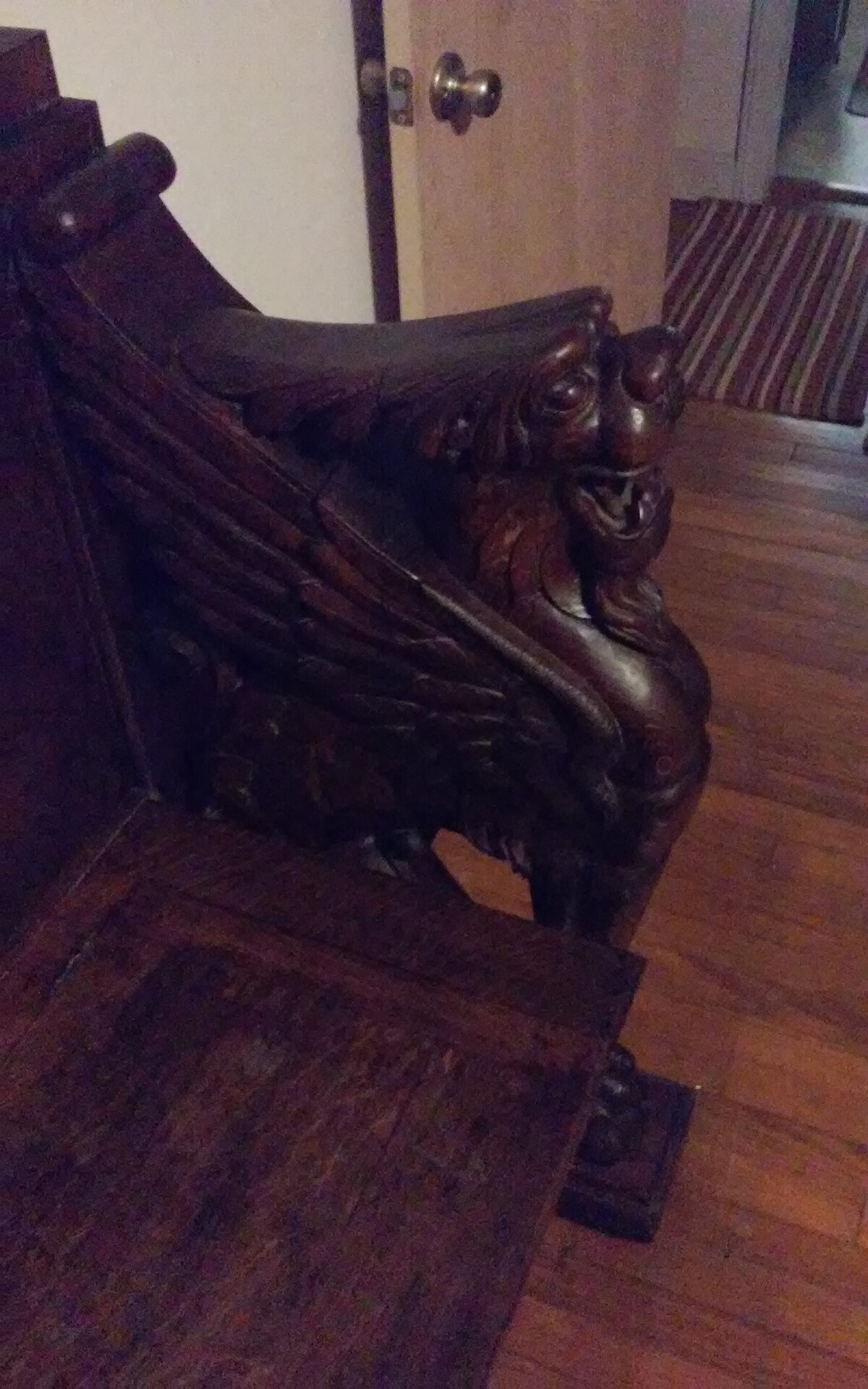 looking through my coins I found a Griffin coin pretty worn down Phokaia, Ionia, AE17, civic issue, 300-100 BC. 3.83 g. Magistrate Isidoros. Head of Hermes right, wearing petatos. FW ISIDWROS beside and beneath forepart of griffin right. Then I noticed I had a Griffin bench circa 1840'S I am checking if i had other coins that matches other house hold items, show your griffin coins, thank for looking