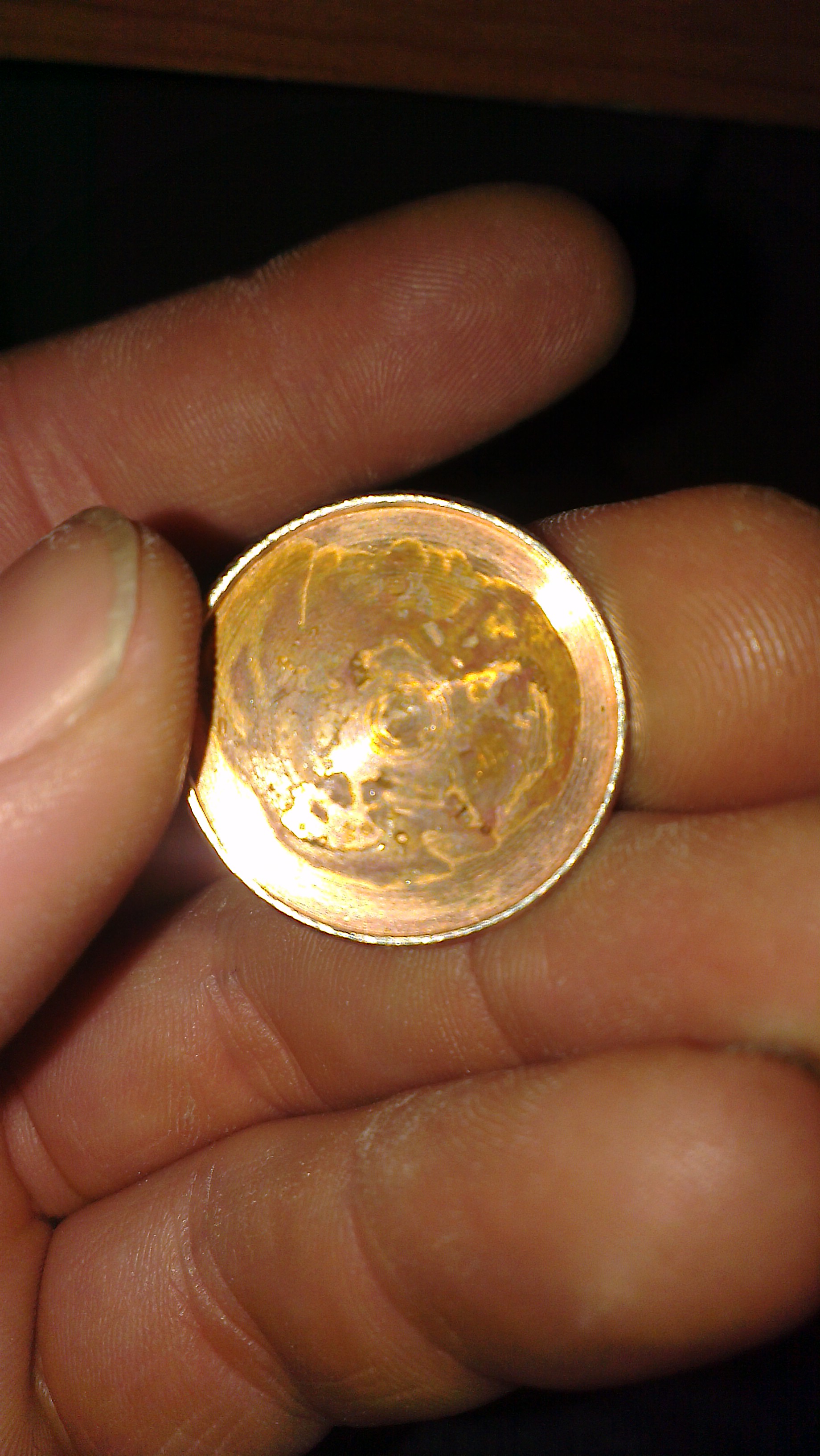 somebody has put the coin on a machine and cut the layer out to be hollow. probably to make a mule coin. cool find.