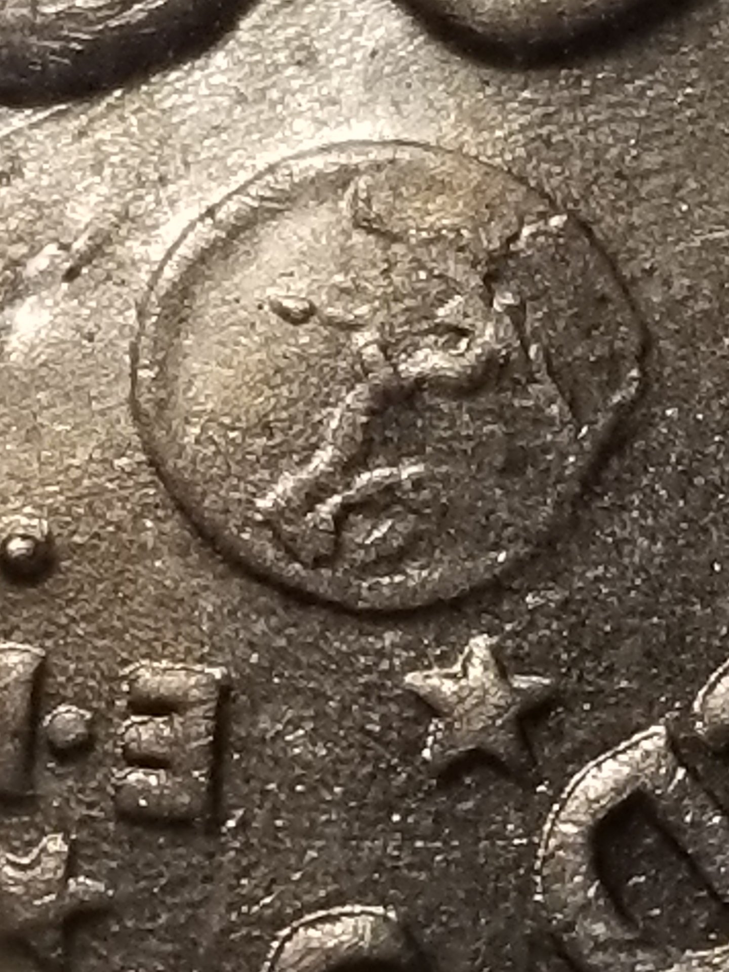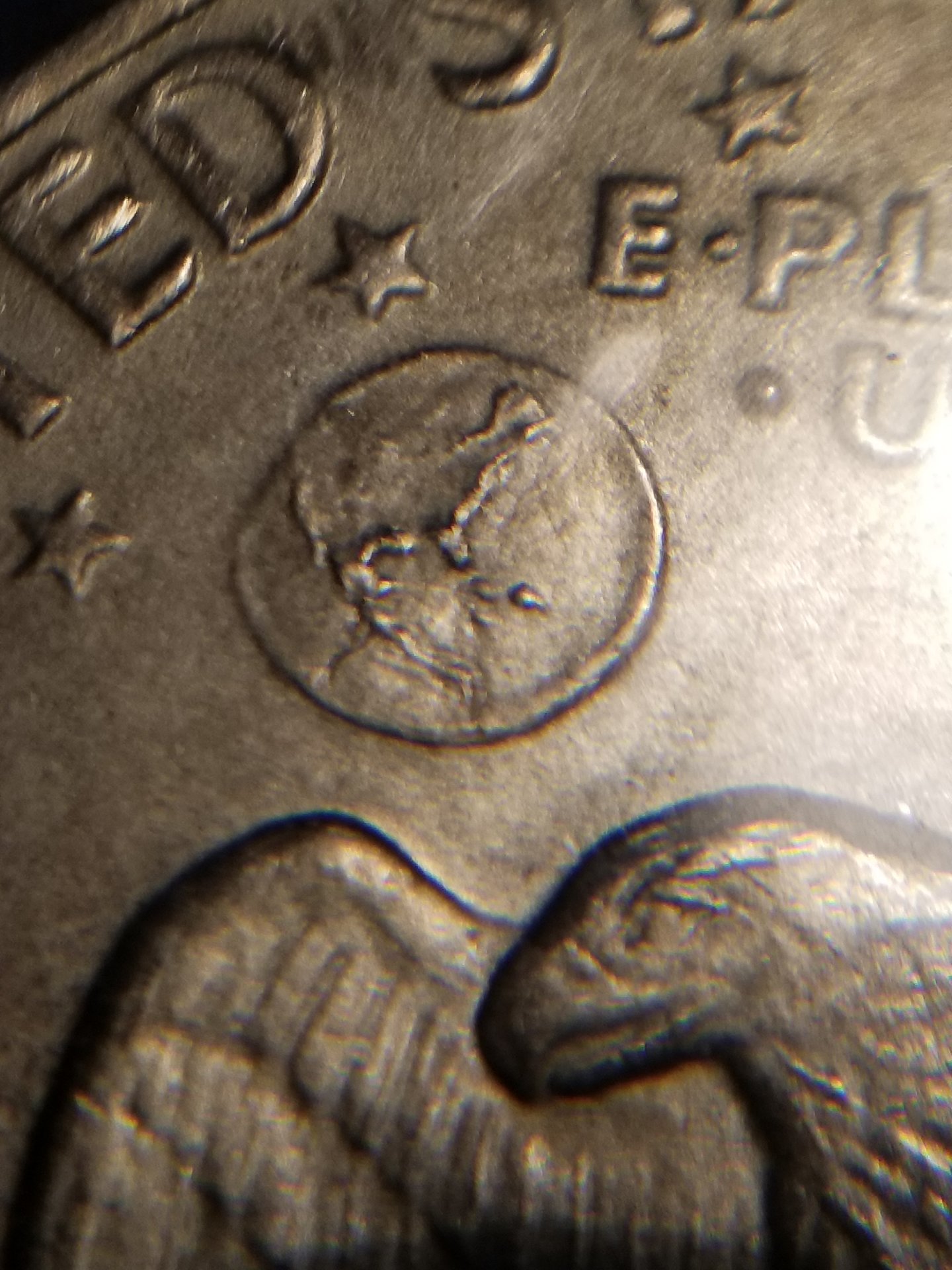I found my trusty jeweler's loupe that I use for fountain pens, here's a close up on the earth part on the back. From what I just googled, that's how you tell, right?