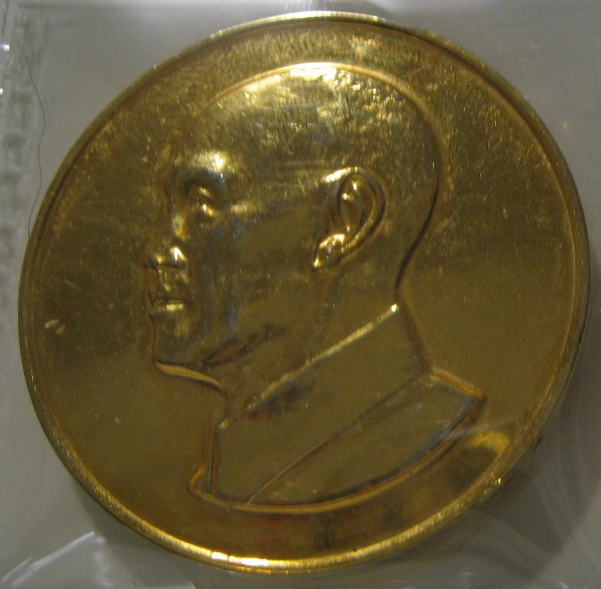 Thanks for the info. I have had a tough time trying to figure out if the first one is gold. It is metal based and pretty heavy. As for authenticity I have no doubts about it. These are from my parents collection which they had since the early 1970s.