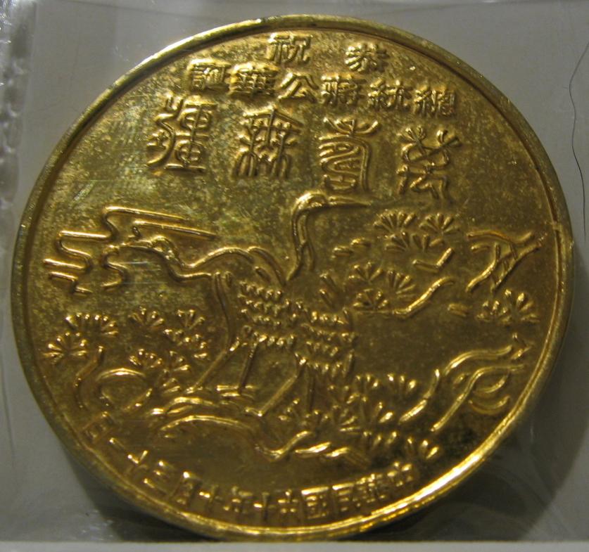 Regarding the first "coin", the inscription on the reverse side offers congratulations to President Chiang Kai-shek on his birthday and wishes him a long life. The crane is a Chinese symbol for longevity. The inscription at the bottom states "Republic of China 60th year 10th month 31st day" which would be October 31, 1971. Chiang Kai-shek was born on October 31, 1887 so he would have been 85 years old on that day in 1971. His portrait is on the obverse side. This "coin" is not money but rather a souvenir produced in Taiwan (Republic of China) commemorating President Chiang's birthday. The second "coin" really is a coin. The portrait is of Yuan Shikai and this "one yuan" ("one dollar") silver coin was minted in the "Republic of China 10th year" which would be 1921. The coin was minted by the "Republic of China" while it was the established government for all of China. Please be aware that these so-called "Fat Man Dollars" are among the most commonly faked coins coming out of China. If the coin is attracted to a magnet then you know for sure it is a fake. Also, an authentic 1921 coin should have a diameter of 39.2 mm and a weight of 26.9 grams. Passing the above two tests, however, still does not guarantee that the coin is real because some of the reproductions are so good now that only an expert can tell for sure. Gary