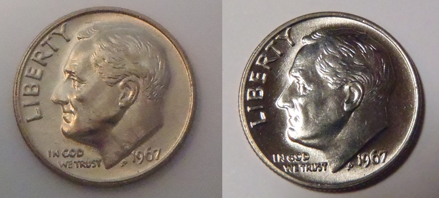 I found this really nice 1967 dime. Can you help me grade this????? I would really love your comments as to why you say what you say about it. 5 photos (looks like late die stage):