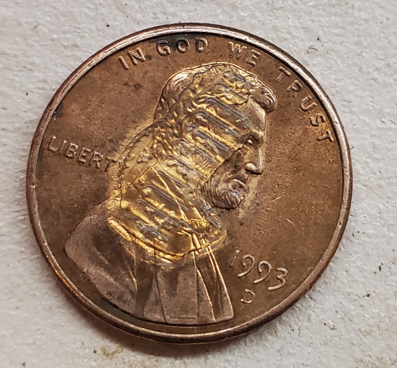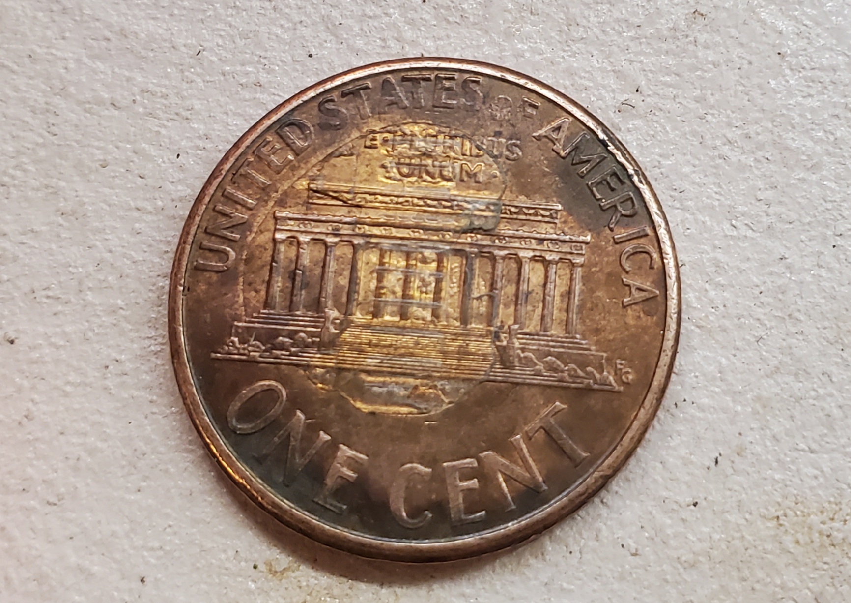 Dried Adhesive.. Some other pennies were stuck to it on both sides then taken apart leaving an impression on the glue. Not a mint error of any kind.