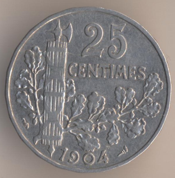 Zinc, weight - 2,5 g., size - 21 mm, thickness - 1,35 mm, mintage - unknown. Engraver: Edmond-Emile Lindauer. Single release only.