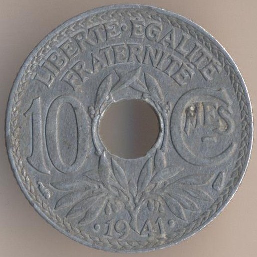 10 centimes 1941 with the republican symbolics.