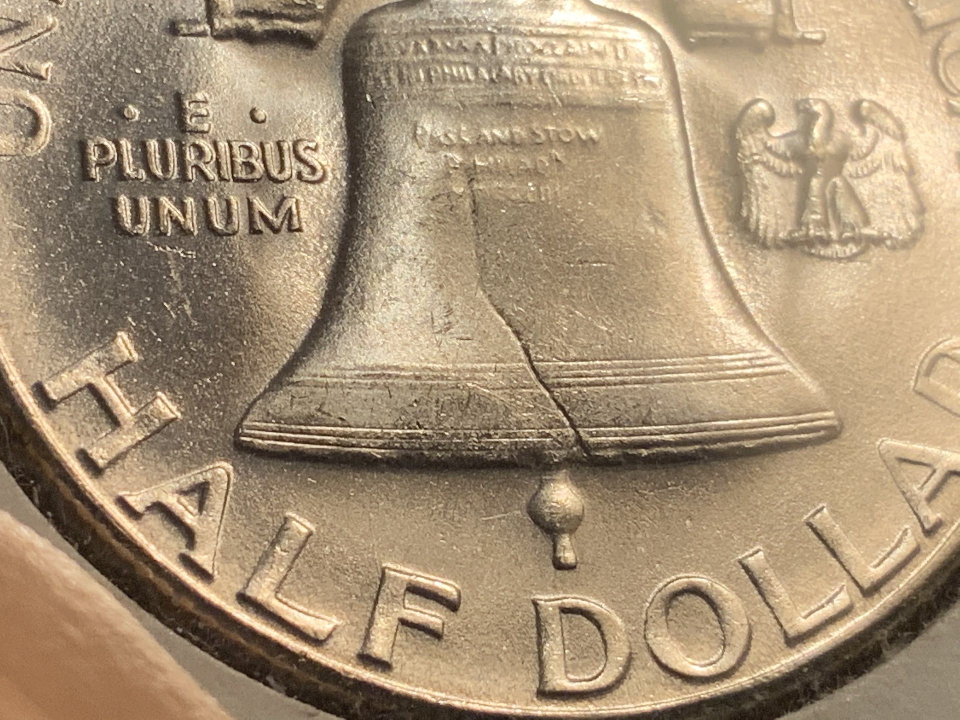 Got it, thank you. You’ve seen it too, then. Clearly the cuts on this coin end the “continuity”, the PCGS official word, but you have seen cuts like this get FBL. I don’t know how to think about it. Maybe it’s about the location of the cut, and the overall clarity of the the bell lines? For example, in this coin the bell lines are clear and distinct at the location of the cuts, no weakness. And the cuts are near the left edge, as opposed to being centrally located. Are these the sorts of factors that they consider? Rhetorical question. No idea. Sigh. I have another question about this coin, if you don’t mind. It’s off the topic of bell lines. There are the lines that look like scratches, but aren’t scratches, coming off the right edge of the device. On this coin they are barely visible without magnification, and only in certain light. I call them stretch marks (not in front of my wife of course). I have them on many Franklins, noticeable, not nice coins, ones in my bullion pile. But also I have them on a number of Franklins, hard to make out except under magnification, coins that seem to me to otherwise be really nice, really close to MS67. I’ll submit the ones that are clearly FBL. But I have no idea how these lines affect the grade. What is your experience?