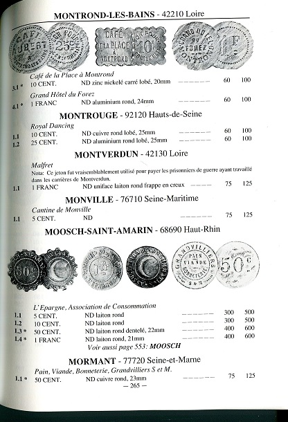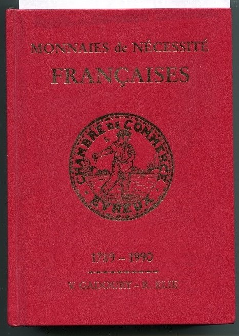 French Notgeld Book MONNAIES de NECESSITE FRANCAISES 1789-1990 by V. Gadoury & R. Elie Hard cover, 688 pages, 6x8 ¼ inches. French language, black and white illustrations near mint condition except for light discoloring on the front cover. $35.00 post paid to any USA address. Foreign buyers must add $10.00.