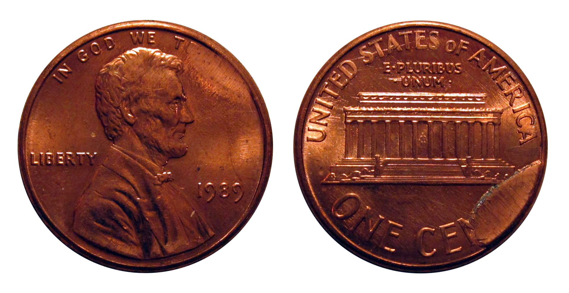 I looked them up in the cud book. The no-date memorial cent is listed as LC-ND-3. The 1989 reverse cud is listed as LC-89-9R.