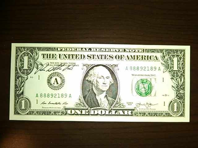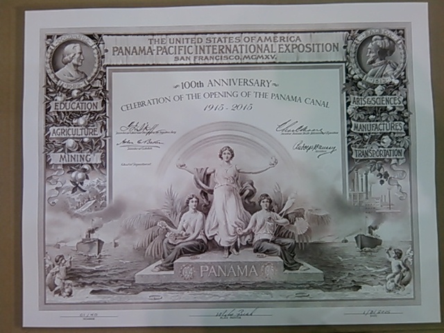 Hey, you caught me on camera! I'm the tall guy in the middle. Here's the $1 bill Madam Treasurer signed for me moments later. Best dollar I spent all day -- the BEP had a pristine stack of the "lucky" 888 bills they would let anyone use for a buck. And mine turned out to be very lucky: My tickets were pulled in the lottery to purchase both the limited run eagle intaglio print and the massive 1915 Panama Pacific Expo award certificate reprint. (Check the Paper Money Forum if you want to learn more about those.) Earlier in the day I snuck in a photo op with the Treasurer. A good day, all told!