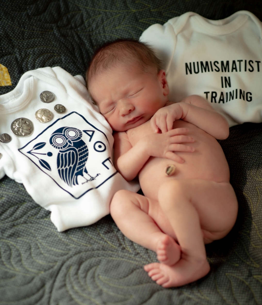 @kazuma78, Serious joy and congratulations to you folks. You're a Family now; guess it's legal. ...Now, don't push him or anything.... Liking that squished-up, baby face. And the coins are pretty great, too.