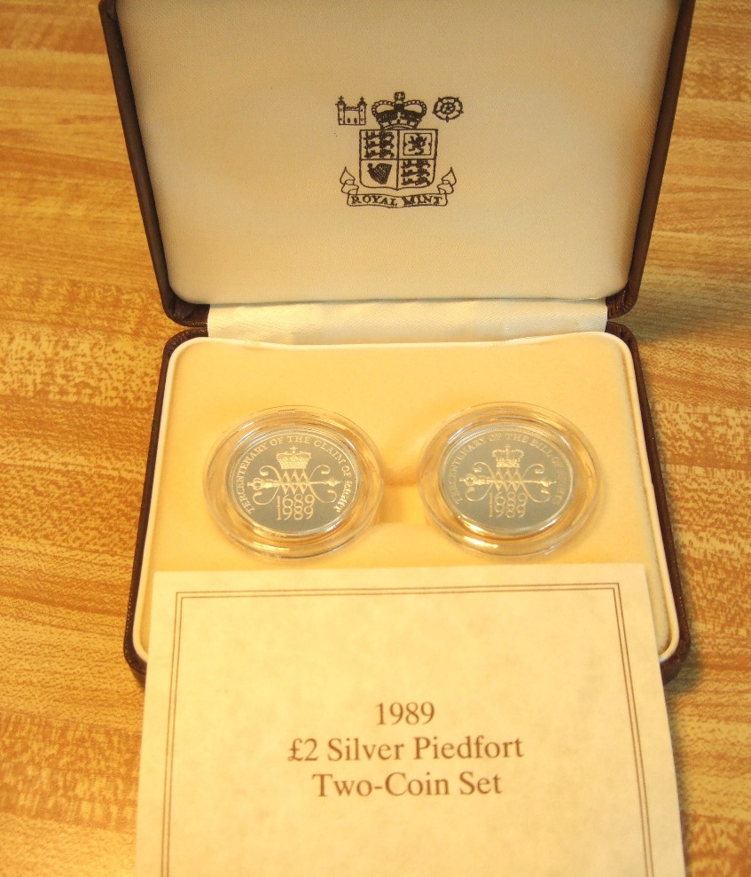 Pristine proof set of 2 in original case, Krause Great Britain Piedforts #P10 and #P11, silver £2 Claim of Rights (mintage 10,000) and silver £2 Bill of Rights, (mintage 25,000) as per photo. Mintages from 2011 Krause-Cuhaj Catalog. Price, $90 postpaid and insured. Shipped to U.S. only. For this item, payment by Postal Money Order only. Image KRV9. Reference, American Philatelic Society Life Member #12078.