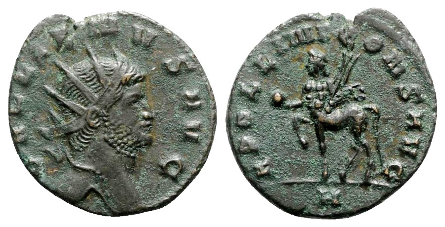 Since this was the most comprehensive thread on the "zoo" coins of Gallienus that we've had since I joined CT, I thought I'd add my two newest ones here, instead of beginning a new thread. First, an antelope left: Gallienus, Billon Antoninianus, 267-268 AD, Rome Mint (3rd Officina). Obv. Radiate head right, GALLIENVS AVG / Rev. Antelope walking left, DIANAE CONS AVG; Γ [Gamma = 3rd Officina] in exergue. RIC V-1 181 [p. 146, Obverse 8K], RSC IV 165, Sear RCV III 10200, Wolkow 7a3 [Cédric Wolkow, Catalogue des monnaies romaines - Gallien - L'émission dite "Du Bestiaire" - atelier de Rome (BNumis, édition 2019)], Göbl MIR [Moneta Imperii Romani] Band 36, No. 716. 20 mm., 3.59 g., 7 h. Second, Pegasus right. I already posted the seller's photos yesterday in @Pishpash's "Pigasus" thread, but I think these (while I'm sure they're not any better technically) show the reddish coloring a bit better: Gallienus, Billon Antoninianus, 267-268 AD, Rome Mint (1st Officina). Obv. Radiate head right, GALLIENVS AVG /Rev. Pegasus springing right, about to take flight. SOLI CONS AVG; A offset to right in exergue. RIC V-1 283 (p. 155), RSC IV 979, Sear RCV III 10362, Wolkow 26a1[Cédric Wolkow, Catalogue des monnaies romaines - Gallien - L'émission dite "Du Bestiaire" - atelier de Rome (BNumis, édition 2019)], Göbl MIR [Moneta Imperii Romani] Band 36, No. 712b. 21 mm., 3.12 g, 11 h. That's some shaving rash! And here are photos (without detailed descriptions) of the five I already had, giving me a total of seven, out of the 32 different types on the list I posted earlier in this thread. Centaur left w/globe (Apollo, 8th Officina) Gryphon left (Apollo, 4th Officina) Doe right w/head turned back (Diana, 5th Officina) Gazelle right (Diana, 11th Officina) Tigress left (Liber Pater, 2nd Officina) Detail showing stripes distinguishing tigress variety from the panther:
