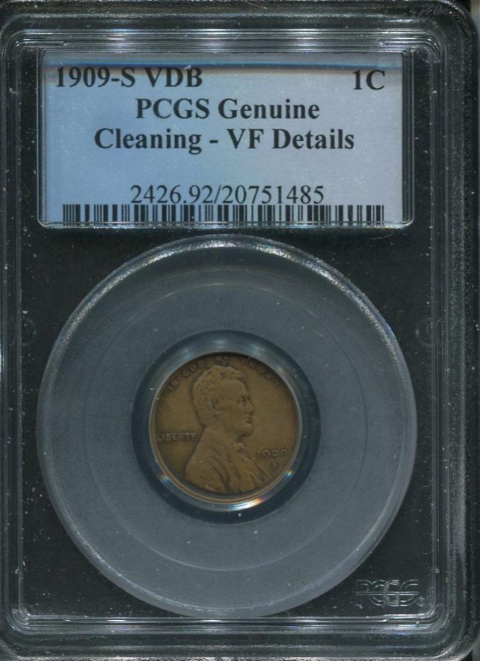 If it's in a PCGS holder: Problem Coins All of the coins in this category (other than 83 and 99) submitted through the regular PCGS services will be placed in a PCGS Genuine holder, ungraded, with one of the following numerical codes placed after the coin number on the holder insert. On certain No Grades (as noted in the table below) the problem is more fully described on the insert. To read a more comprehensive description of any No Grade, click on the “more” link of any No Grade category. [TABLE="width: 758"] Code Reason Explanation Described Holdered 82 Filed Rims Rim(s) and/or edge is filed. (more) Yes Yes 83 Peeling Lamination Potential for sealing damage. (more) Yes No 84 Holed and/or Plugged Any filled or non-filled hole. (more) Yes Yes 91 Questionable Color Any artificial re-toning & dipped copper. (more) No Yes 92 Cleaning Harsh cleaning or polishing. (more) No Yes 93 Planchet Flaw Generally large & prominent flaw(s). (more) No Yes 94 Altered Surfaces Any applied substance (wax, putty, lacquer). (more) No Yes 95 Scratch(s) Large & prominent scratch(s). (more) No Yes 97 Environmental Damage Corrosion, excessive toning, verdigris. (more) No Yes 98 Damage Any metal movement. (more) Yes Yes 99 PVC Residue Oily polyvinylchloride substance. (more) Yes No [/TABLE] For more, look here: http://www.pcgs.com/grades.html