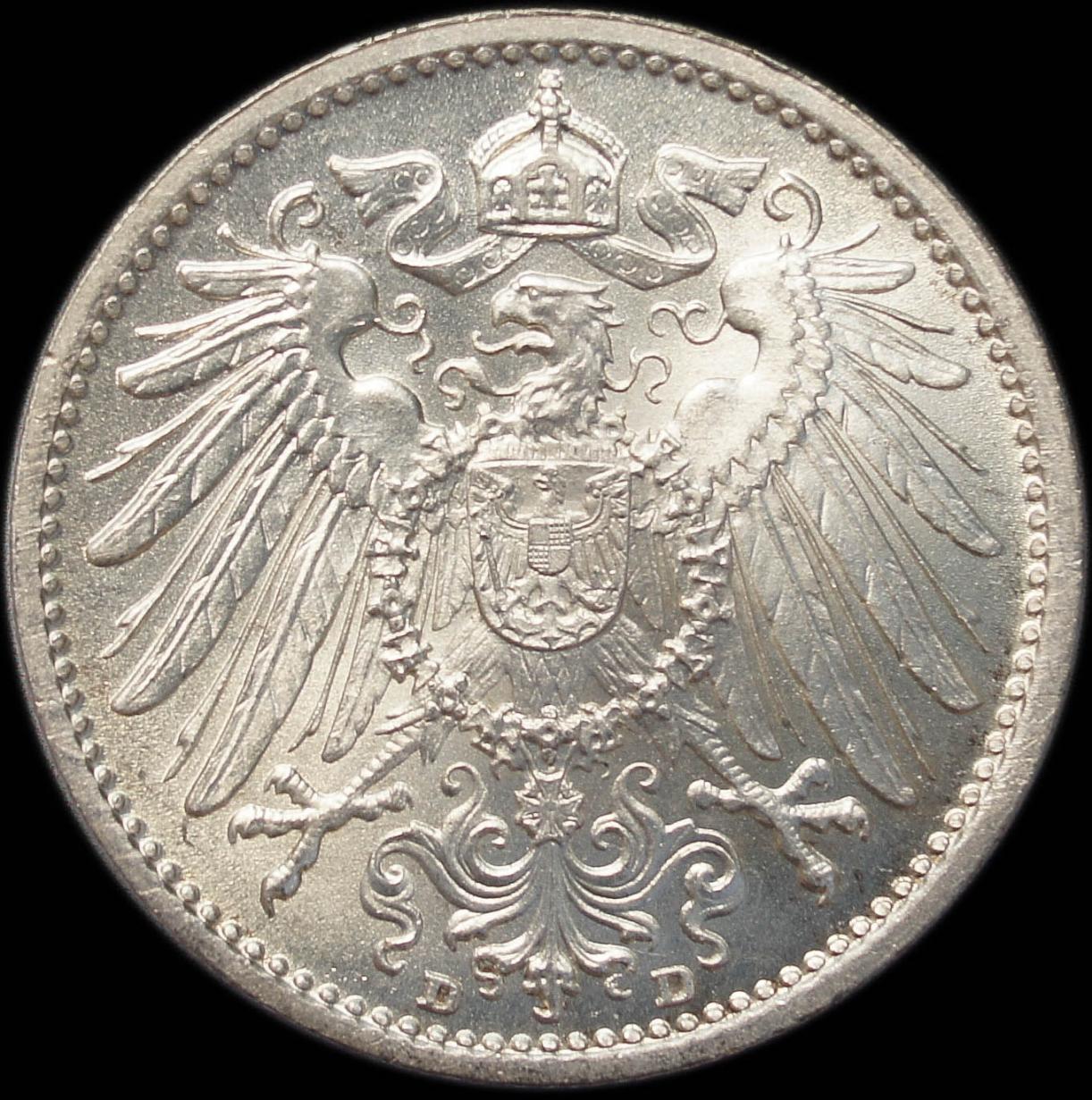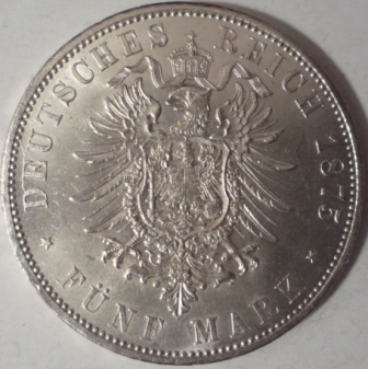 My latest empire - aquisition was really " a hard to come by " - one. 1875 was the year when the Hamburg - mint opened. Hamburg had at last joined the mark - currency in 1874 ( 3 years after the Emire was founded ), in 1874 the City Parlament decided to establish a Mint of there own. When they discovered they had to cover the expenses they almost backed off again, but as a place of commerce cash allways was needed, so there was a strong demand for beeing able to produce coins. After some trial strikes in late 1874 the newborne Mint finally started producing in early 1875 . The first coin struck with the Mintmark " I " ( depicted as J though ) was the golden 10 - mark, followed by the whole run ranging from 1 pfennig to 20 mark. As I like the Hamburg coins very much I have the idea of putting together the entire 1875 - set( plus the 2 mark of 1876 and the golden 5 mark of 1877 ). Today the dollar size 5 - mark could join in, now I am only missing the 5 and 10 pfennig and the 1 mark to be completed.
