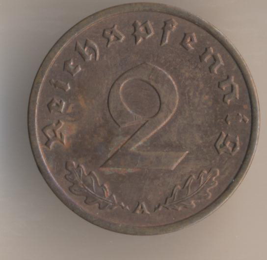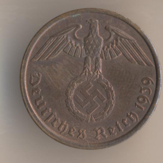 Here are a few others in my collection: 1939-A Bronze 1 Reichpfennig 1939-D Bronze 1 Reichpfenng - Notice Die Crack on reverse, this is the only non-MS coin in my collection. It's AU 1944-A Zinc 1 Reichpfennig 1940-A Bronze 2 Reichpfennig - Notice the lint mark on the obverse from a die polishing rag 1940-F Zinc 5 Reichpfrennig 1948-A Zinc 5 Reichpfennig Allied Occupation coin (notice no Swastika) 1939-D Brass 10 Reichpfennig 1939-A Nickel 50 Reichpfennig 1938-E .625 Silver 2 Reichmark 1935-D .900 Silver 5 Reichmark 1936-A .900 Silver 5 Reichmark