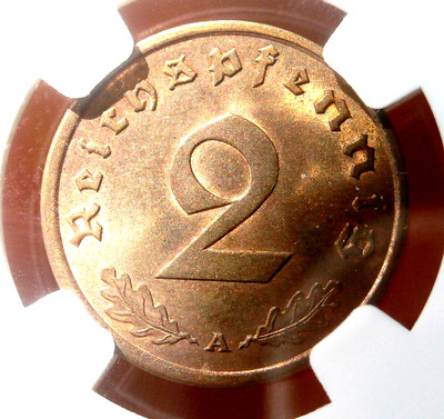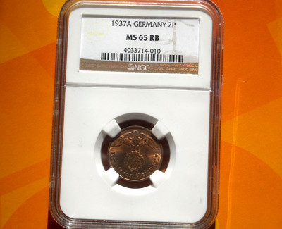 [SUP]NGC MS-65 RB 1937-A NAZI SWASTIKA 2 ReichsPfennig German COIN-3rd REICH GERMANY:)