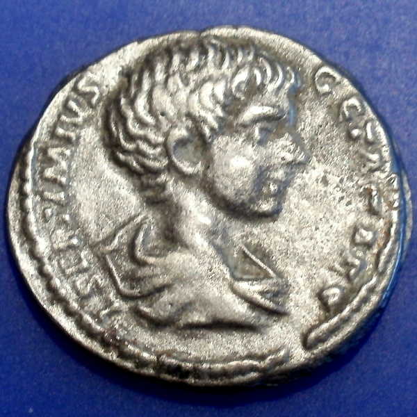 You can see his portrait develop on the same type in the same issue. Both coins share the same dating and attribution but you can see the development of the facial hair. The full bearded portrait doesn't appear until later coins. Geta denarius - RIC 059a Obv:– P SEPTIMIVS GETA CAES, Bare headed, bearded, draped bust right Rev:– PONTIF COS II, Genius, naked standing left, sacrificing out of patera over lighted altar and holding corn ears Minted in Rome. early A.D. 209 Reference:– BMC p.274, 584. RIC 59a. RSC 114. 72 examples in RD