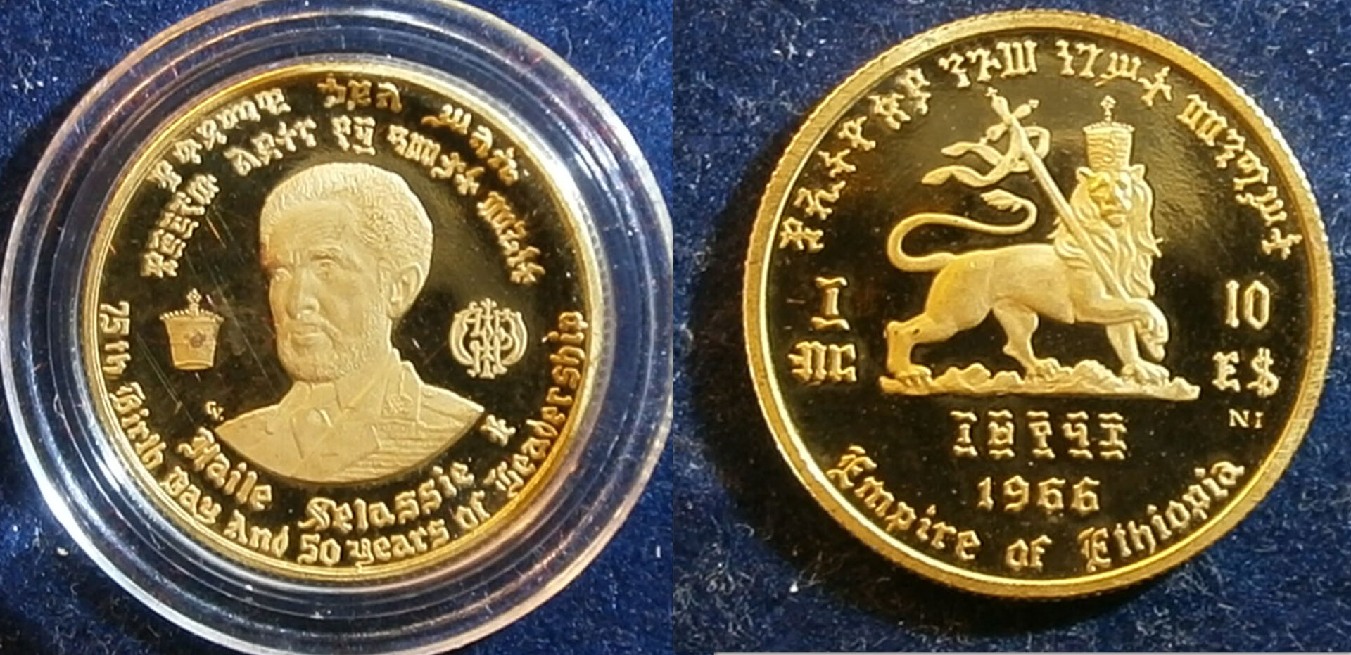Here's a small one, though I don't think it is designated a "bullion", but it is 4 g Au900. $10 Haile Selassie.