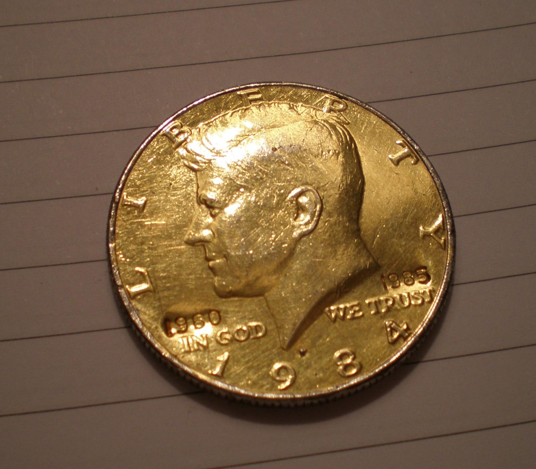 I have a similar half dollar like the one pictured. I got it free with something I bought through the mail. I imagine it is worth exactly what I paid for it! Funny I was looking at it and wondering, it is plated in 24K gold...
