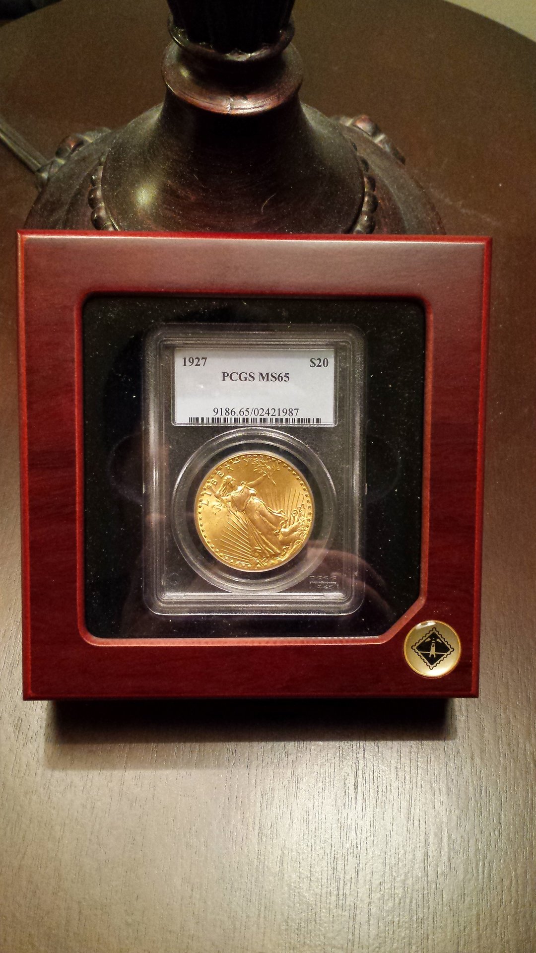 Thanks Rhein.....glad you liked them. Yes, please feel free to show your Saints/classic gold here, too. The glass cover holder is made by Lighthouse. Nice reddish-mahogany wood finish; I bought a few with glass covers and some without (future orders probably will be just glass). Just wanted something a bit 'upscale' from the normal plastic coin holders for my very best coins: http://www.amazon.com/gp/product/B00450O7RI/ref=oh_aui_detailpage_o06_s00?ie=UTF8&psc=1 They also make holders for rows of slabs in 25 and 50, here's the 50-holder: http://www.amazon.com/gp/product/B002ZOAOMI/ref=oh_aui_detailpage_o06_s00?ie=UTF8&psc=1 Costs a bit more than the plastic stuff that many use, but if you don't have tons of coins that need lots of holders, you can splurge a bit on the few you do need. The 75 slab slots I have will probably take me a few years to fill out. And I still have 4 more of the individual holders and who knows how long I may have to save up to get some nice coins to put in those.