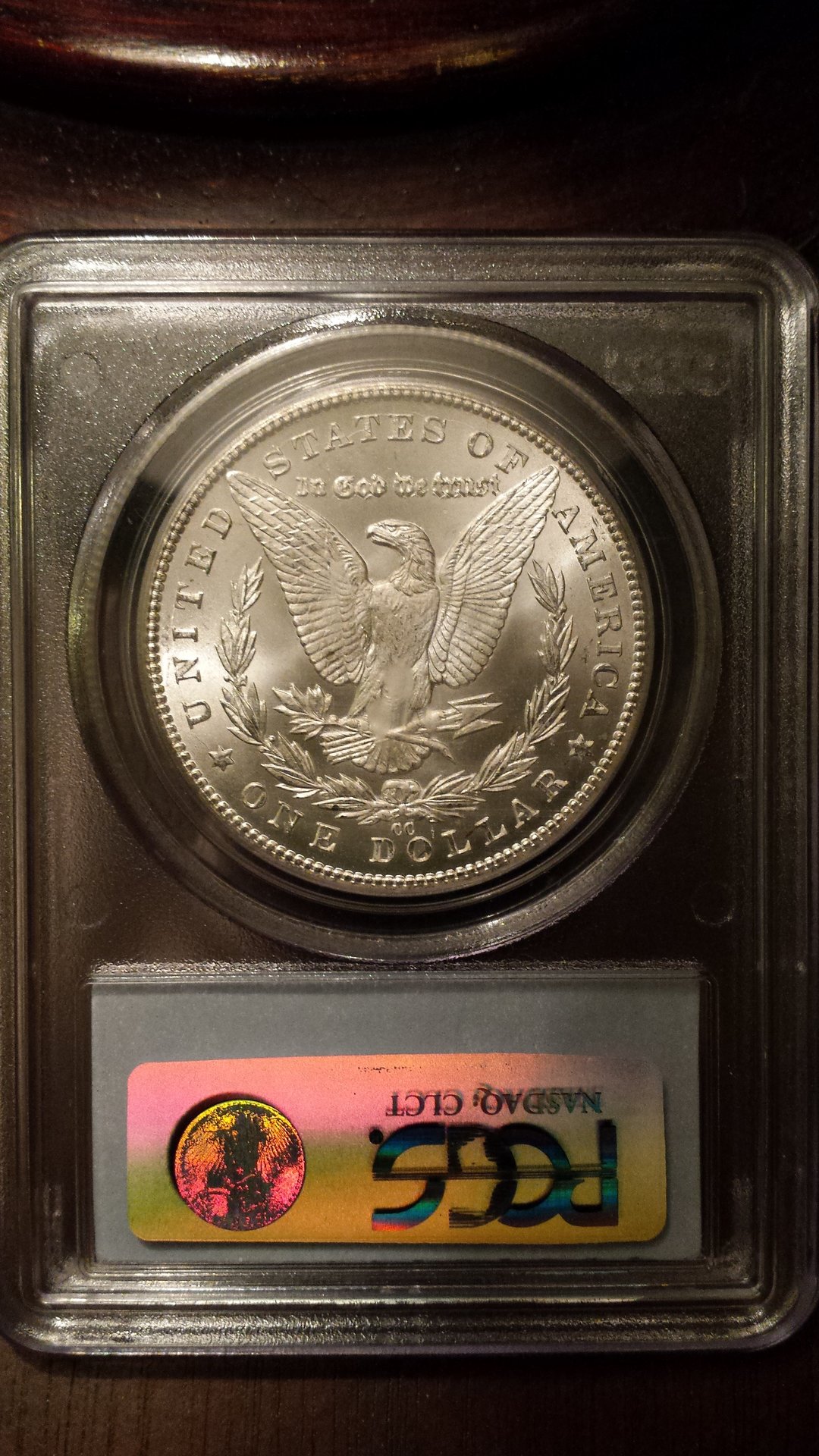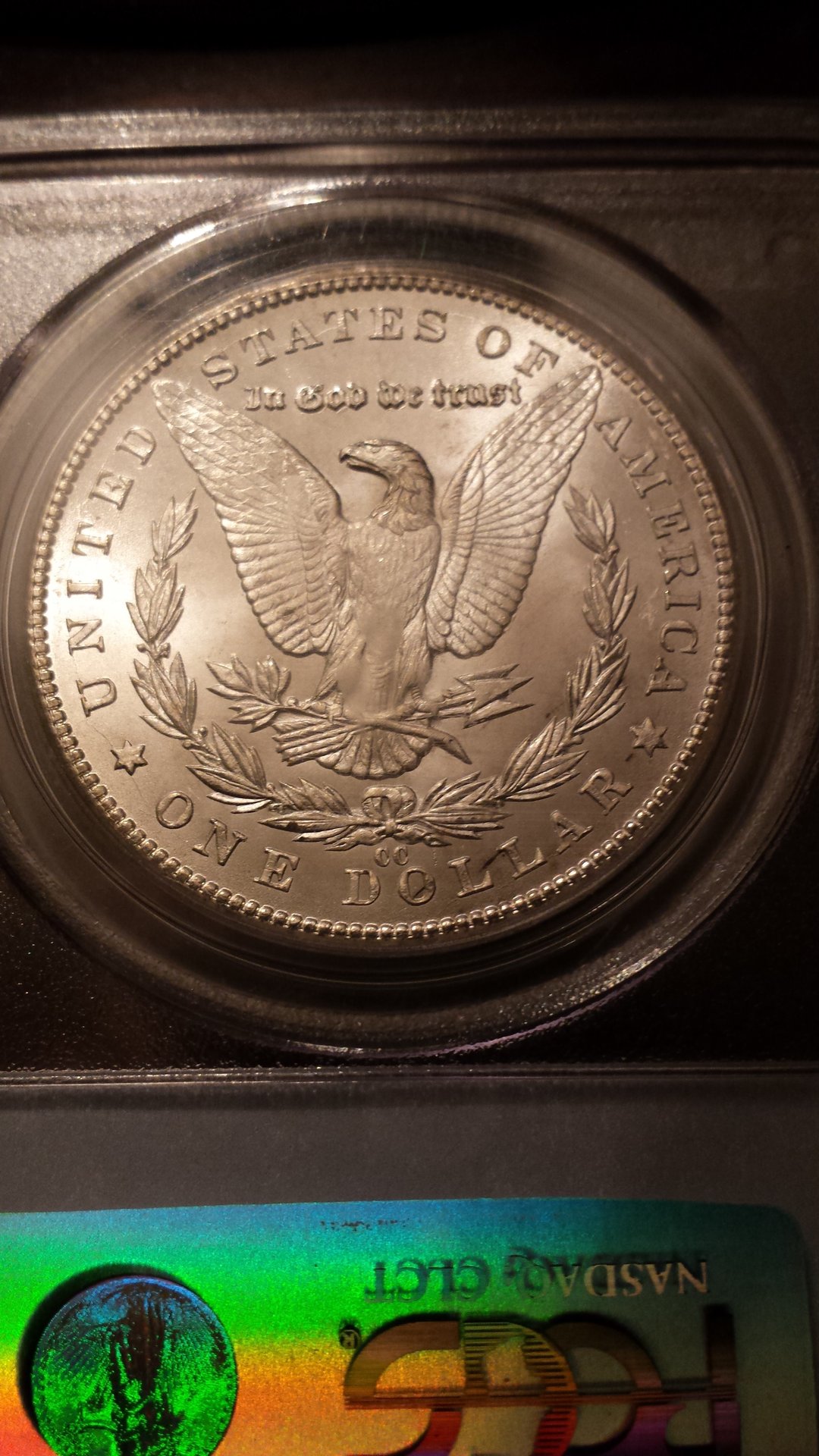 Here's something I got on Ebay, one of the Uncirculated Morgan Dollars released in the early-1970's. A guy in CT was found a year ago selling counterfeit ones with packaging made to look like the original 1970's plastic and foam. Gotta be careful.... I guess the TPGs now will rate stuff in the OGP because these are popular with a blue NGC ribbon around it with a rating. I'm not sure how this would grade, I guess low-60's based on my other Morgan but feel free to narrow it down for me.