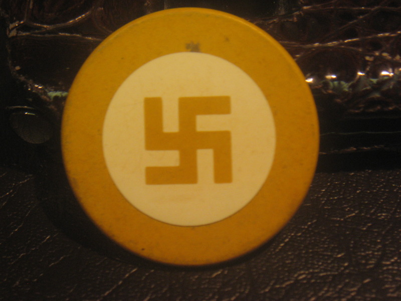 I got this poker chip and I don't know anything about it at all, except it was made prior to Hitler and his reign of terror. I have come across a set on ebay awhile back tho and they were asking a very large amount. Anyways, anyone know what this clay poker chip would sell for? :thumb: