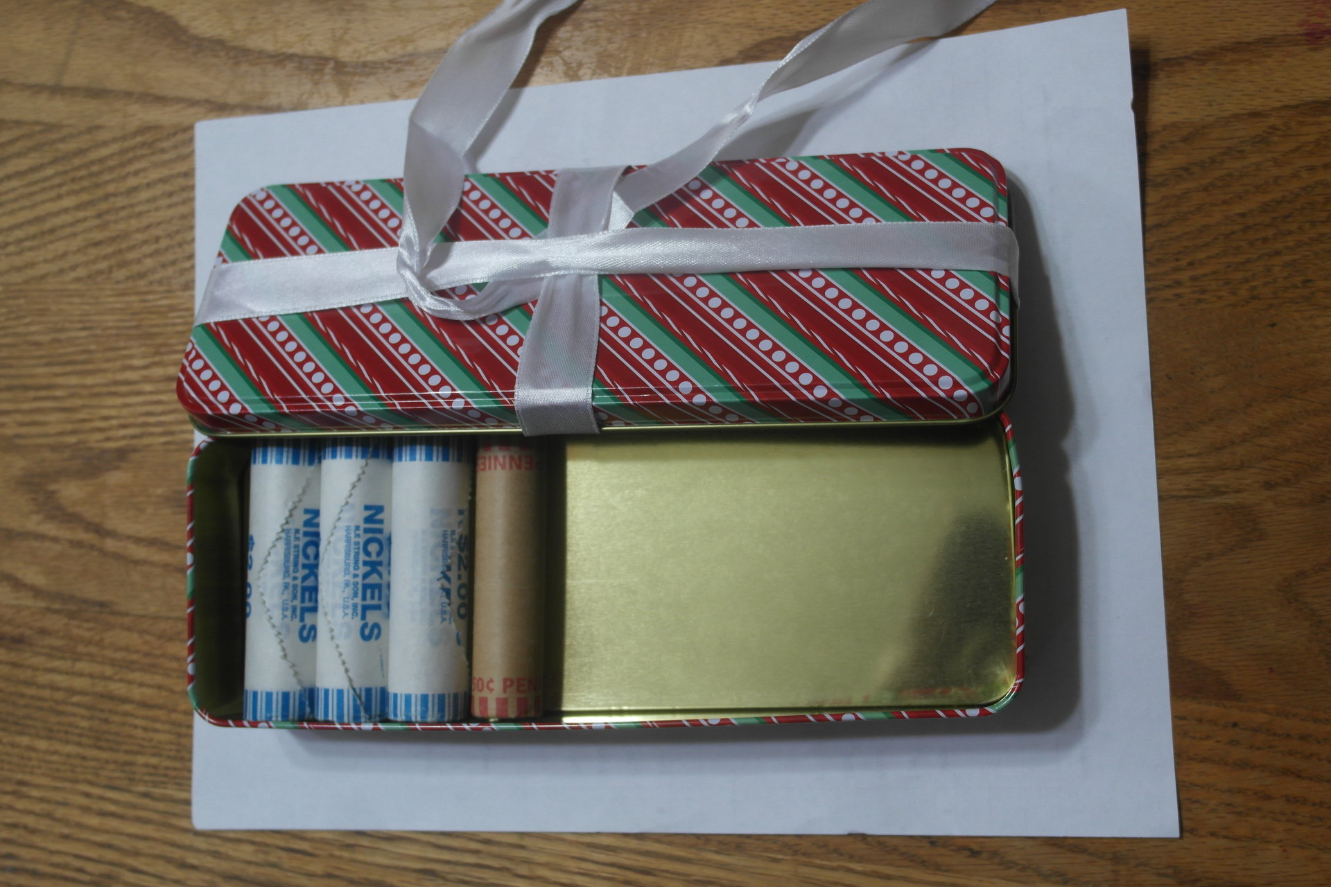 Meow followed your advice, and looked around at the stores near Meow. Meow also carried a piece of paper folded to the length of a roll per your advice. Meow found Swiss Miss Coco tins on sale for half price. They have a cute Polar Bear in winter clothes on them. They cost $2.50 each, and they include 6 packets of cocoa. They will hold 24 rolls of pennies in them. Now Meow will get fat drinking cocoa out the dish instead of water. Diet gone, but mission accomplished. Thanks for the idea.