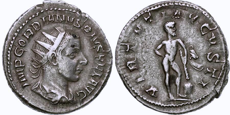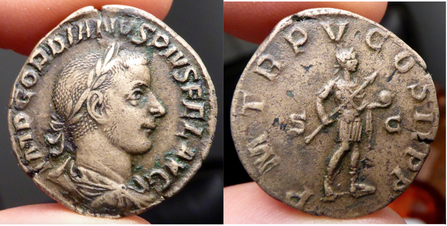 Here are two recent acquisitions of Gordian III , Antoninianus with reverse of Gordian sacrificing over an altar, and Sestertius with reverse of Gordian advancing with spear...