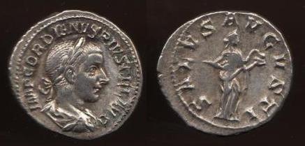 Here are one more coin of my Gordian III collection, my SALUS AUGUSTI denarius. Struck in AD240 as a part of 6 denarii types to commemorate a wedding of the Emperor if I am not mistaken, one of the last major issues of the denarius for circulation.