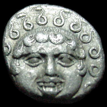 OBV: Gorgoneian facing with snakes for hair and a protruding tongue