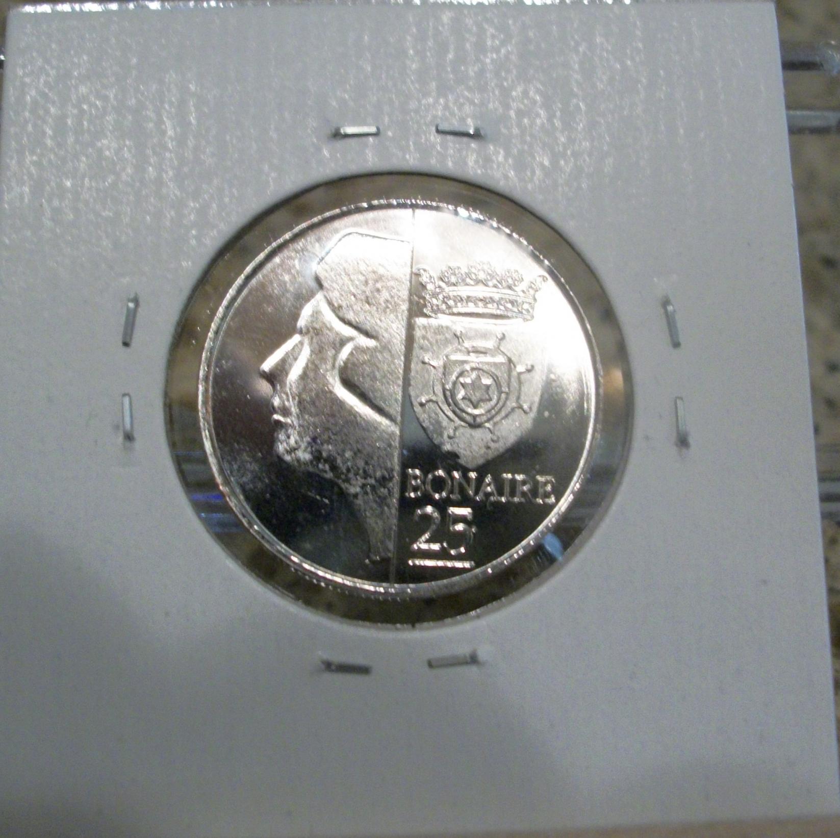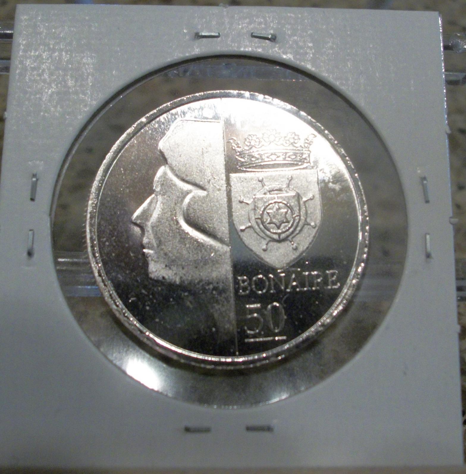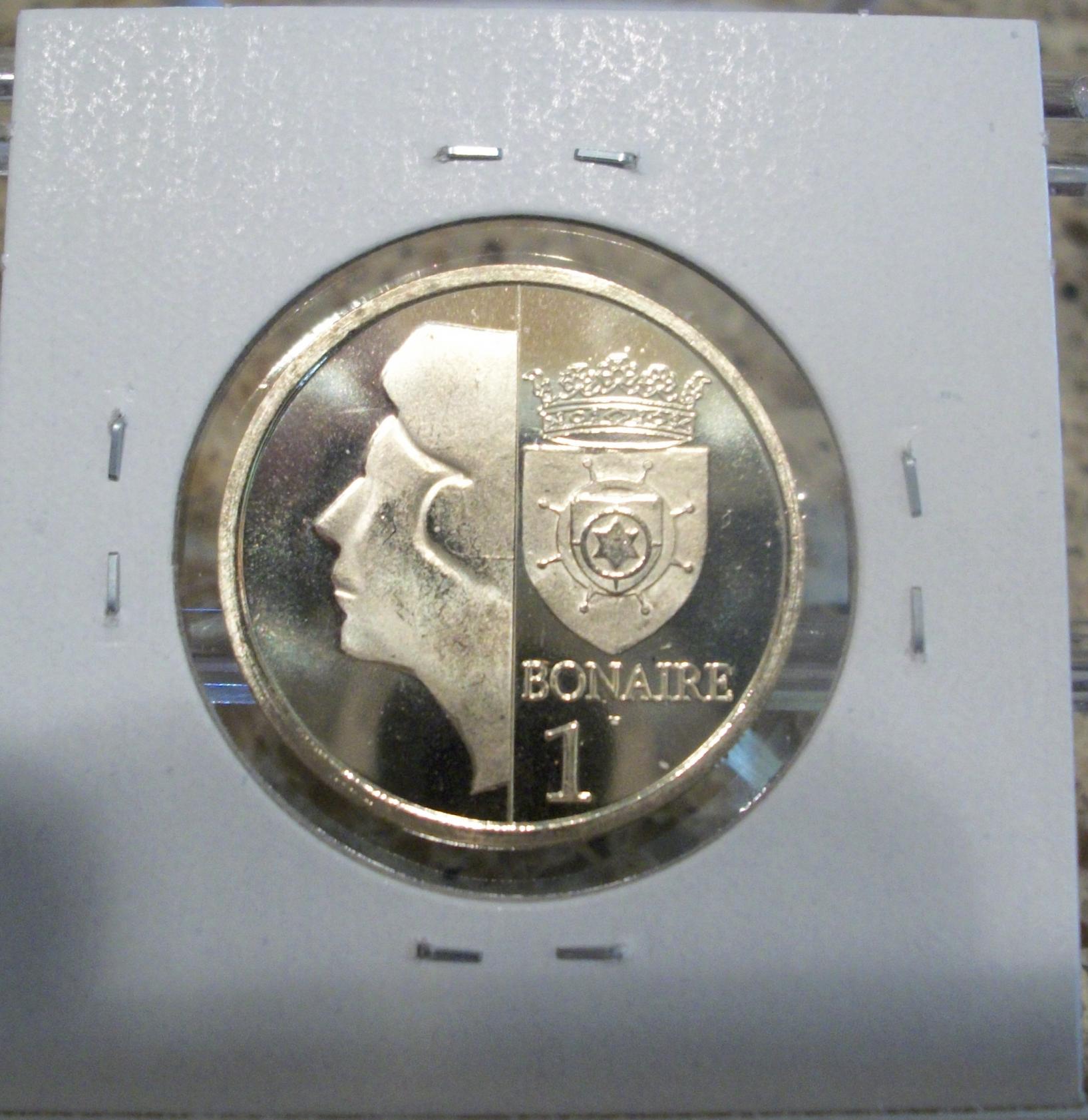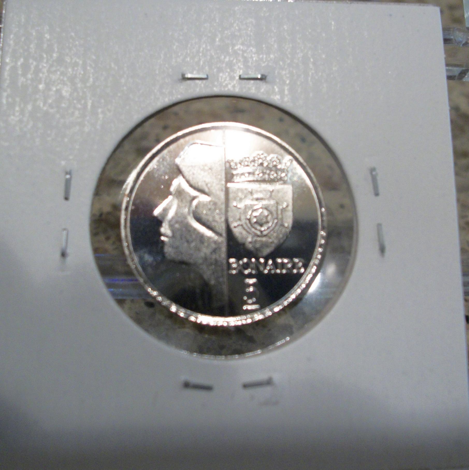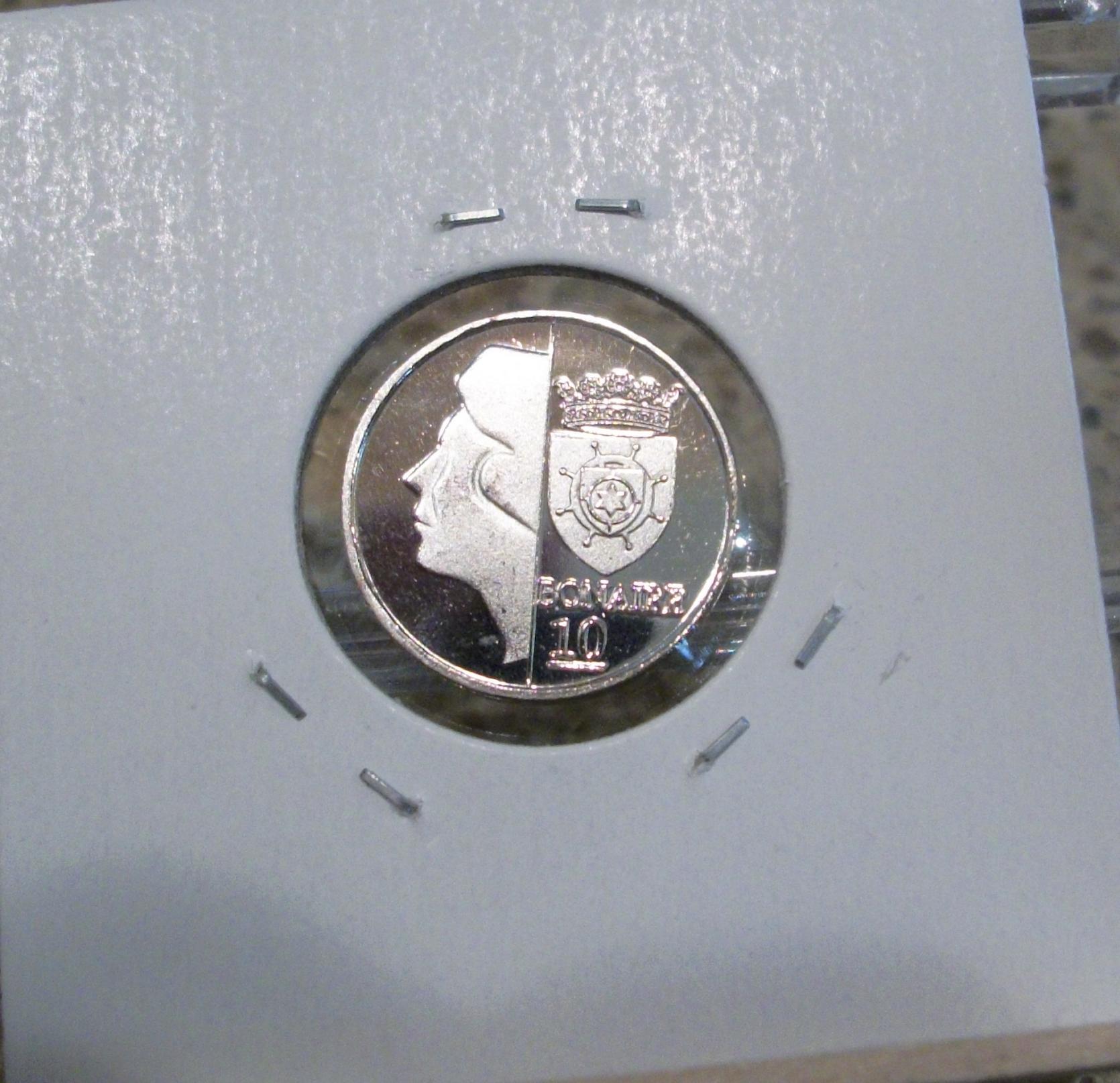 Bonaire 10 Dollars this coin is my personal favorite from this set. the color is simply amazing. the weight of this is quite hefty. its 8 sides are fun to hold. I need to get an airtite for it. I do not want to see it scratched up. this set went from smallest to largest size and not by denomination order. I am liking bi-metallic coins more and more.
