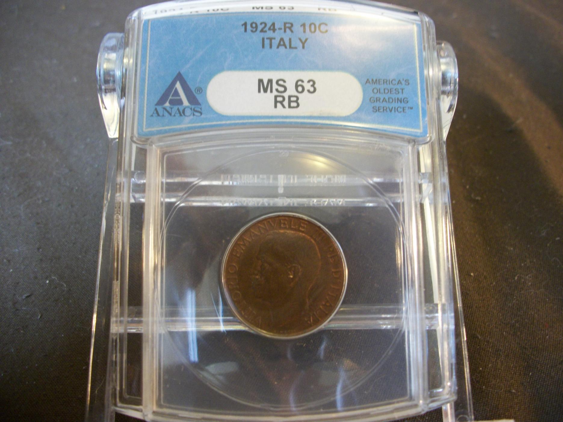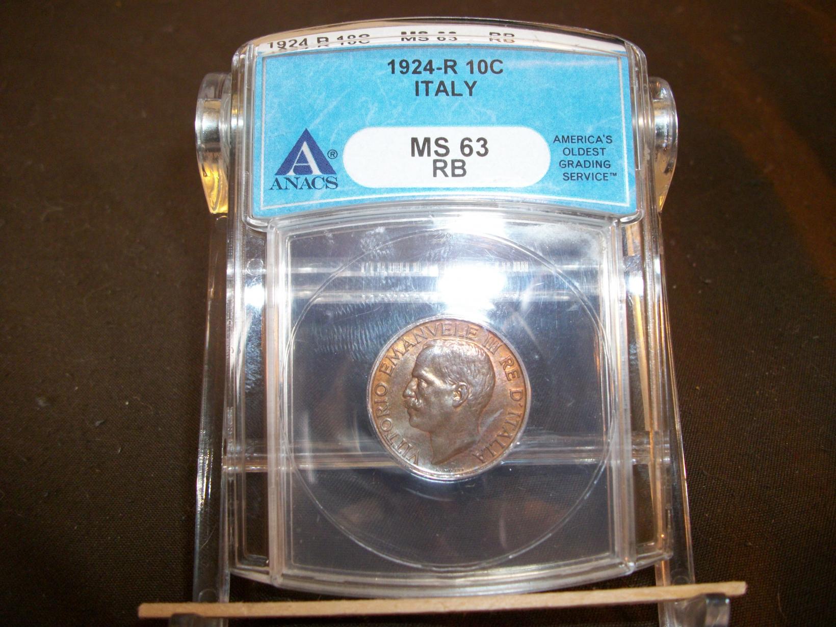 ANACS 1924-R MS-63 Italy 10 centesimi bee: I know the pics did not come out that good. working on it....