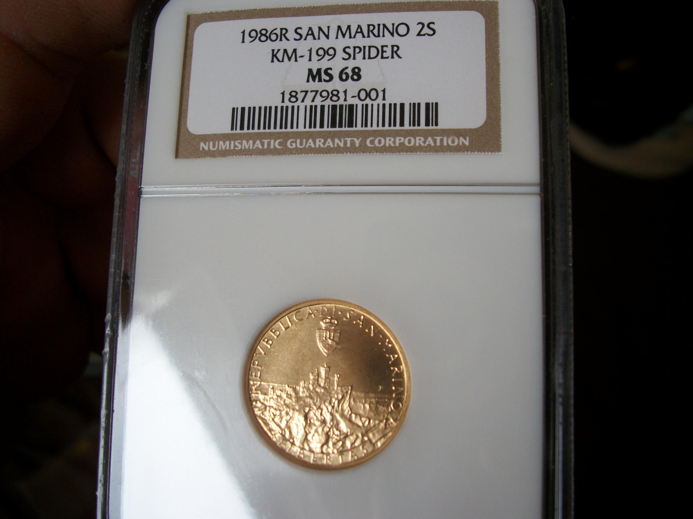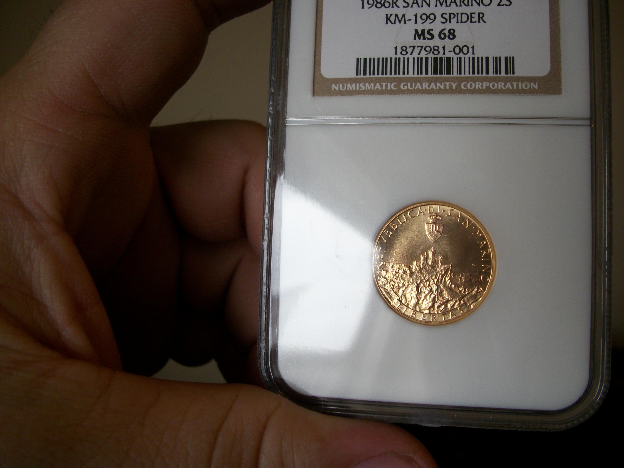 NGC MS-68 1986 2 scudi spider gold I love this coin because it has a spider on it and that it is made of gold. :kewl::hail: