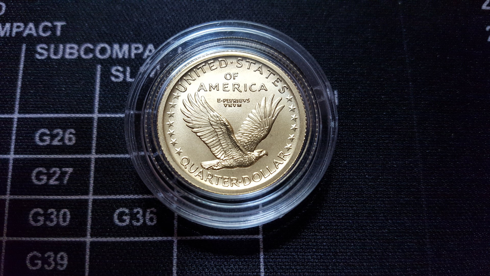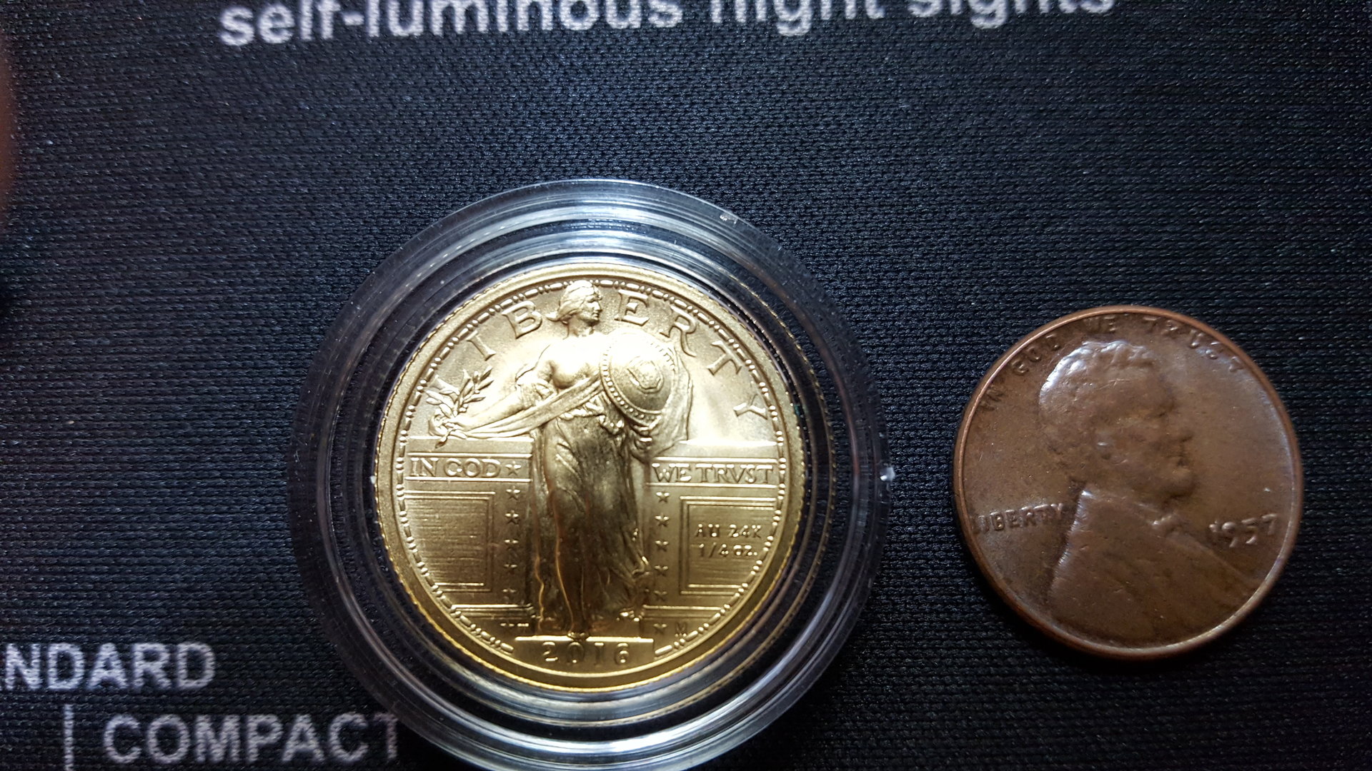 After waiting forever, mine showed up and i'm very happy with it and i think its one of the most beautiful coin the mint has made, just my opinion. This was ordered 6min. after they went on sell, mint had a shipping date Sat. morning, didn't get picked up till Tuesday night and a guy in a shopping card pushed all the out West. I have a subscription for the 2016 PR ASE. They were Shipped last Friday morning and still haven't been picked up, what gives. This coin is Awesome...( mine is the large nipple variety) I can't wait till the Walker comes out. i bought the Daniel Carr Dime, Quarter and half, going to put them in one holder Silver and Gold..