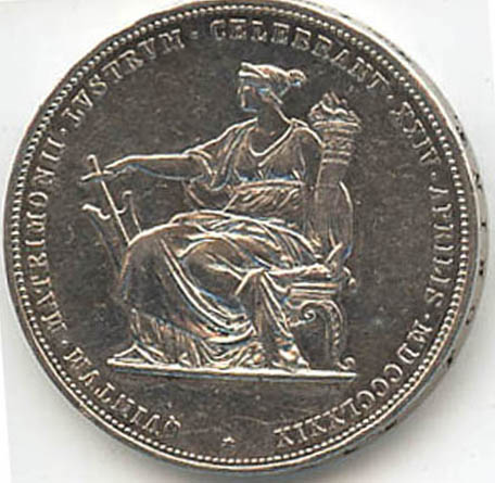 This silver 2 gulden was issued in 1879 for 25th anniversary of their wedding.