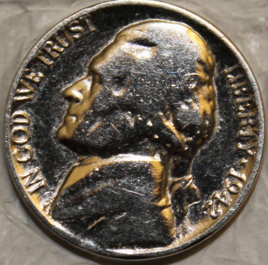 The nickel is actually 35% silver, after circulating awhile they turn a sort of greenish yellow colour - which is how they usually stick out like little sore thumbs whence I am sifting through piles of nickels looking for little treasures. But like the 1943 steel cents there were businesses back in the 1980s that were reprocessing(harshly cleaning) and then plating them with chrome and selling them in sets in those back of magazine adverts.